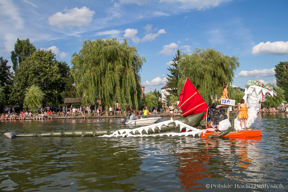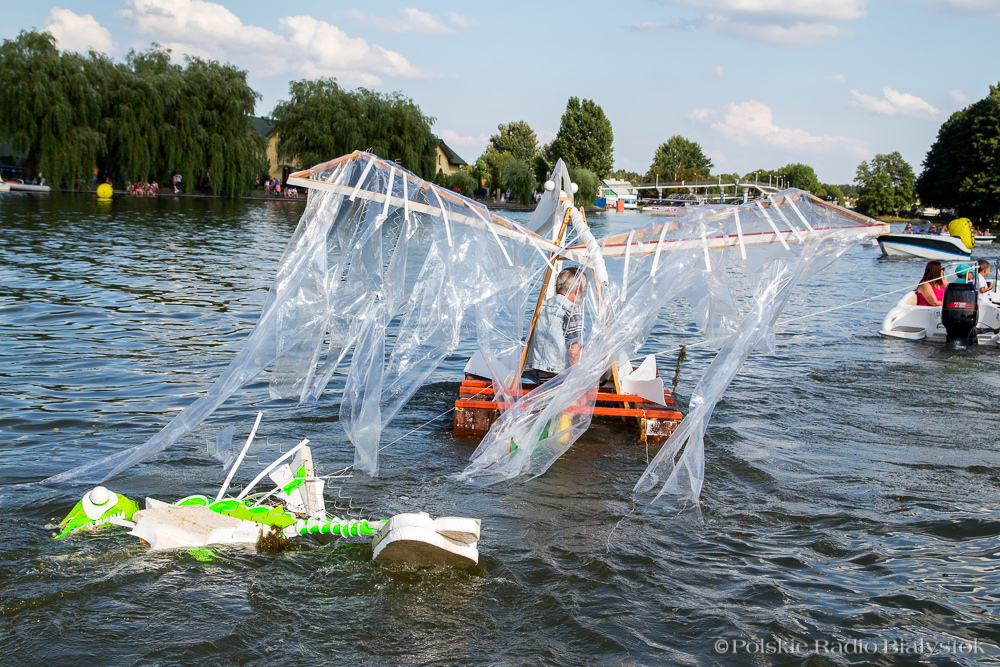 Efekt końcowy konstruktorzy zaprezentowali w niedzielę, 31 lipca w Augustowie. Były wodne walki i wybuchy, pływająca siłownia i karczma, smok, czarownica, muchomorek i kogucik - w sumie 26 ekip. (jż)