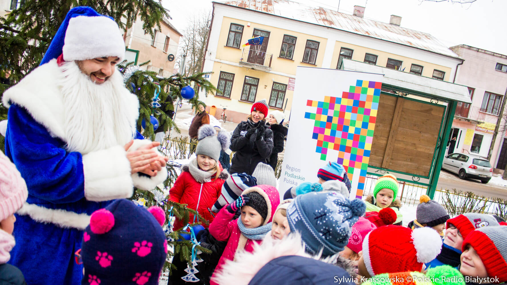 Choinka na niebiesko w Goniądzu, fot. Sylwia Krassowska