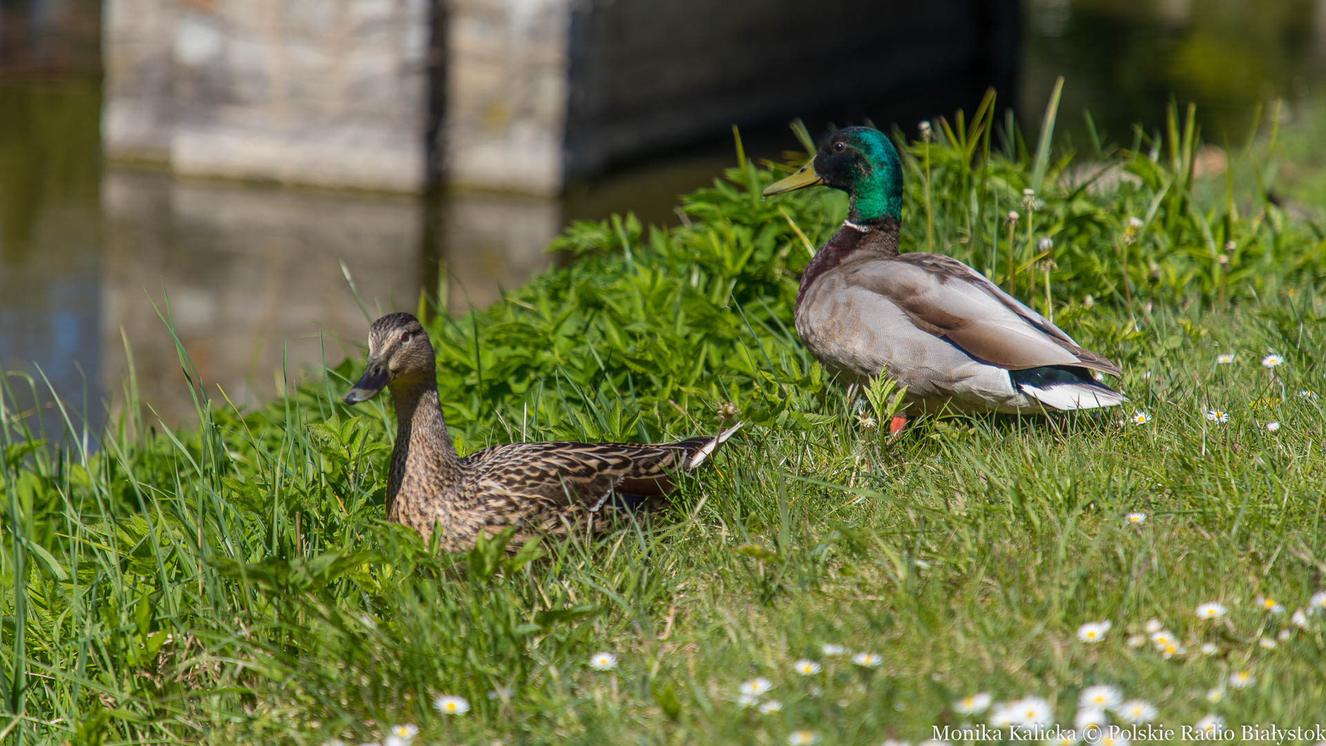 W parku jest sporo spacerowiczów, fotografujących się w otoczeniu kwiatów i rzeźb. Obserwują też loty kaczek krzyżówek i karmią gołębie.