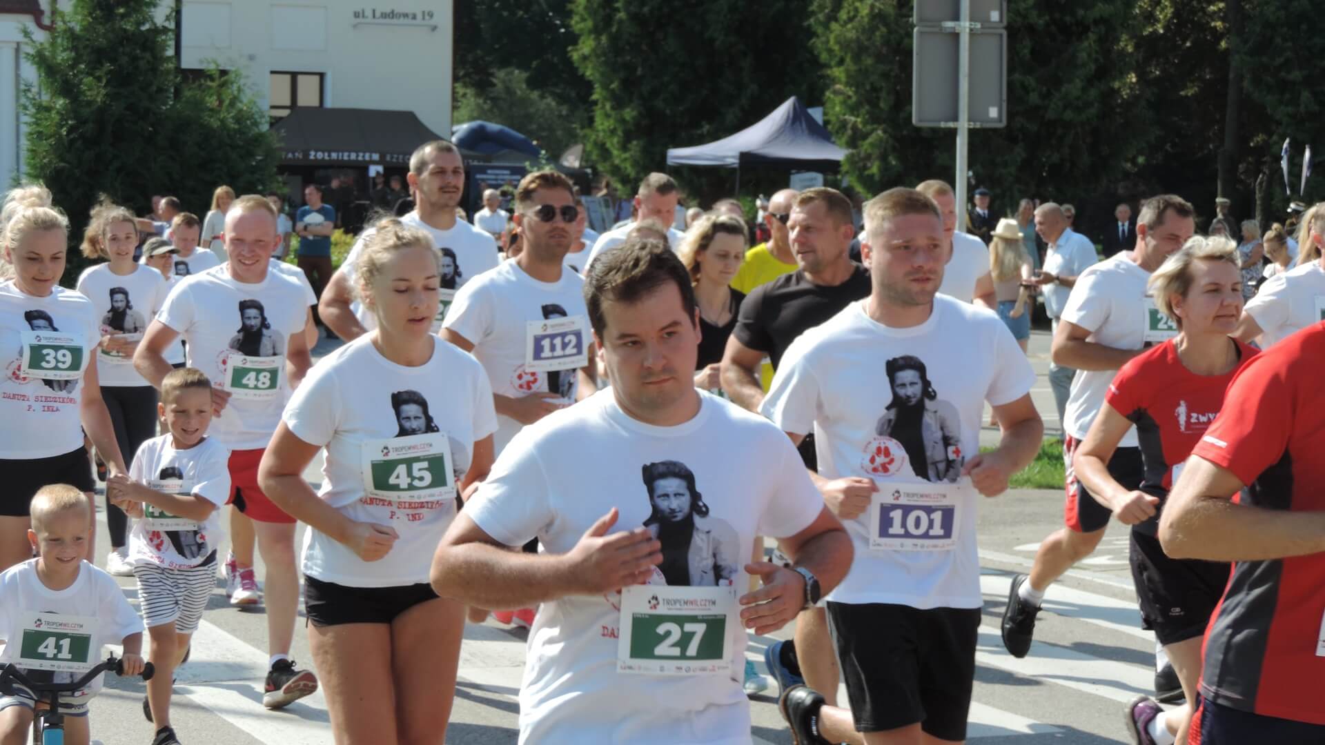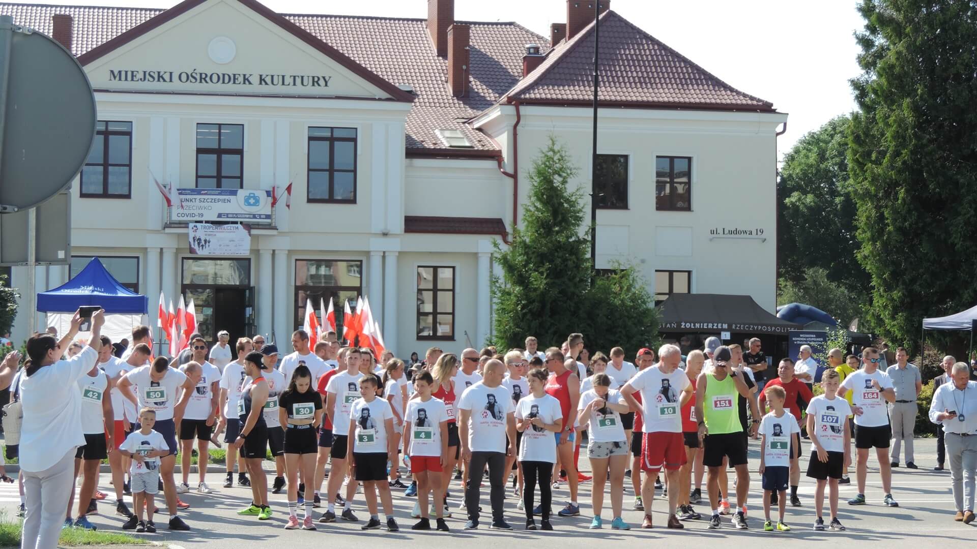 Przed rozpoczęciem biegu poświęconego żołnierzom wyklętym, złożono wiązankę pod pomnikiem mjr Kazimierza Kamieńskiego "Huzara" i jego żołnierzy. Wśród składających kwiaty, obok samorządowców i przedstawicieli służb, był także senator Marek Komorowski, który zaraz potem wystartował w honorowym biegu na dystansie 1963 m.