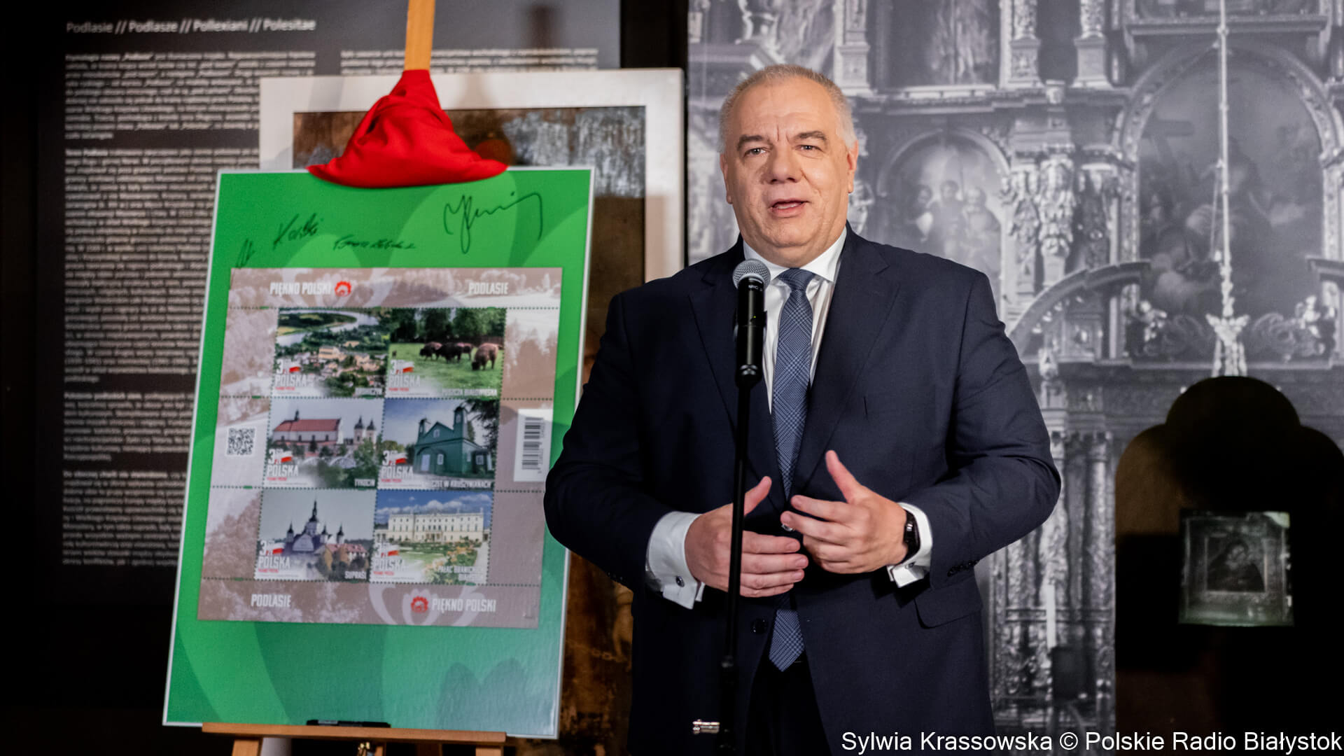 Jacek Sasin dodał, że Podlaskie to region wielokulturowy, co także znalazło odzwierciedlenie w znaczkach. Zapowiedział też, że kolejne znaczki będą prezentować Lubelszczyznę.