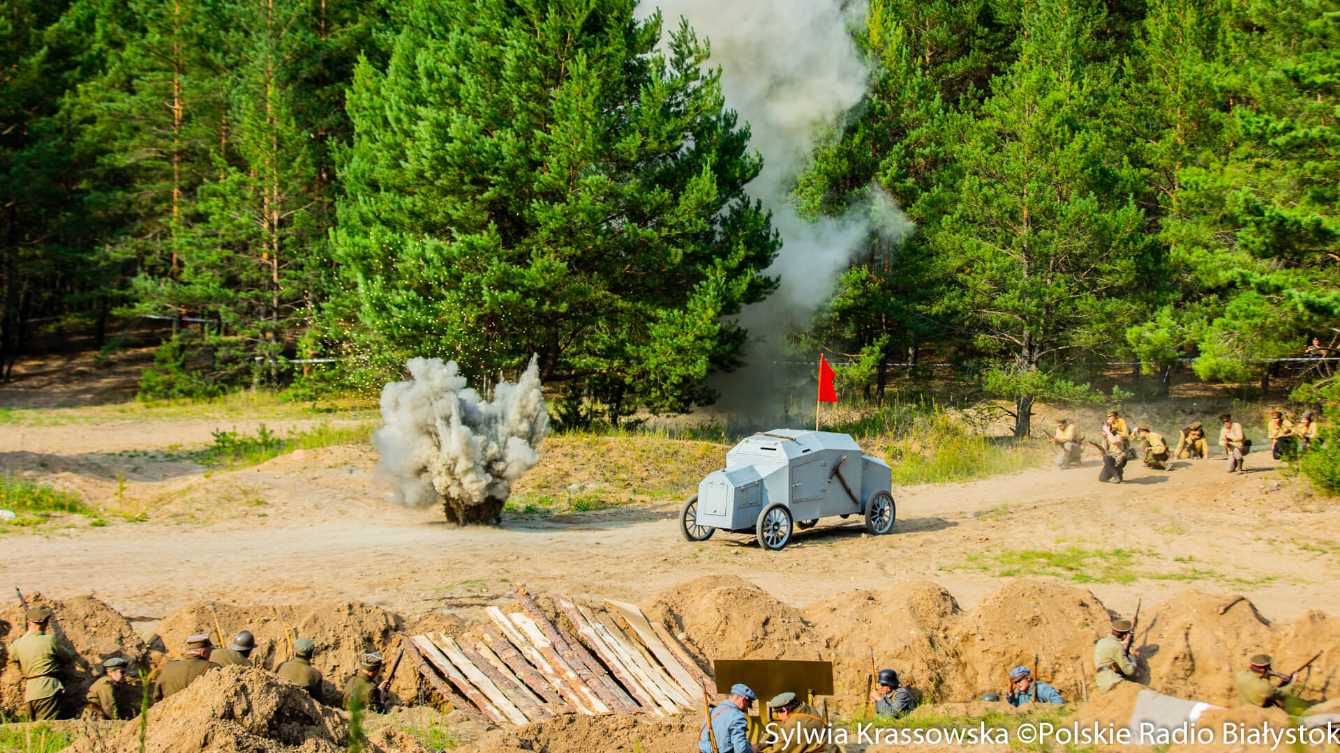 Na sobotę (19.08) i niedzielę (20.08) w Ogrodniczkach w gminie Supraśl przygotowano m.in. przejażdżki pojazdami militarnymi, wystawę sprzętu wojskowego, a także rekonstrukcję Bitwy Białostockiej z 1920 roku.