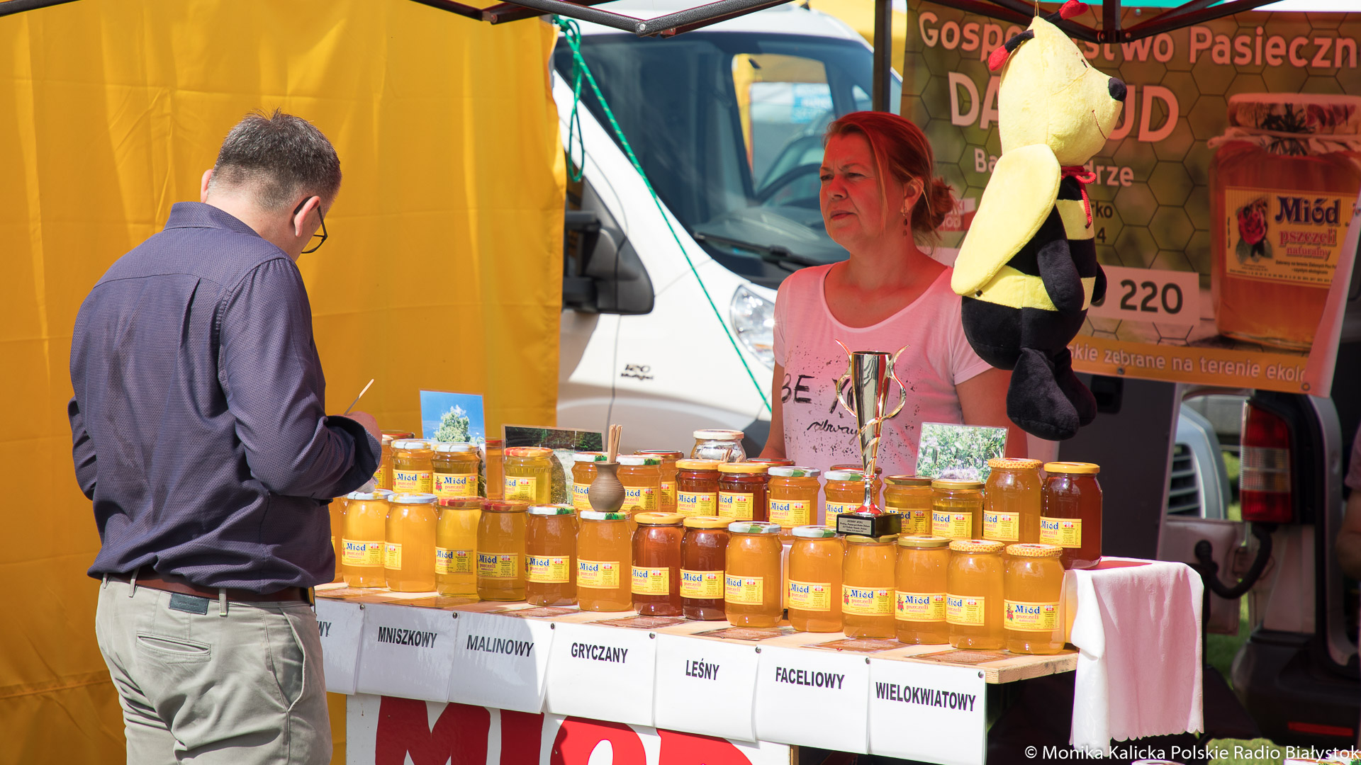 Zajrzeliśmy na stragany Tykocińskiej Biesiady Miodowej, na której swoje specjały wystawiło ponad 30 pszczelarzy. Oprócz podlaskich miodów znaleźliśmy w Tykocinie też mniej słodkie rarytasy kuchni regionalnej. Nie zabrakło też rękodzieła ludowego.