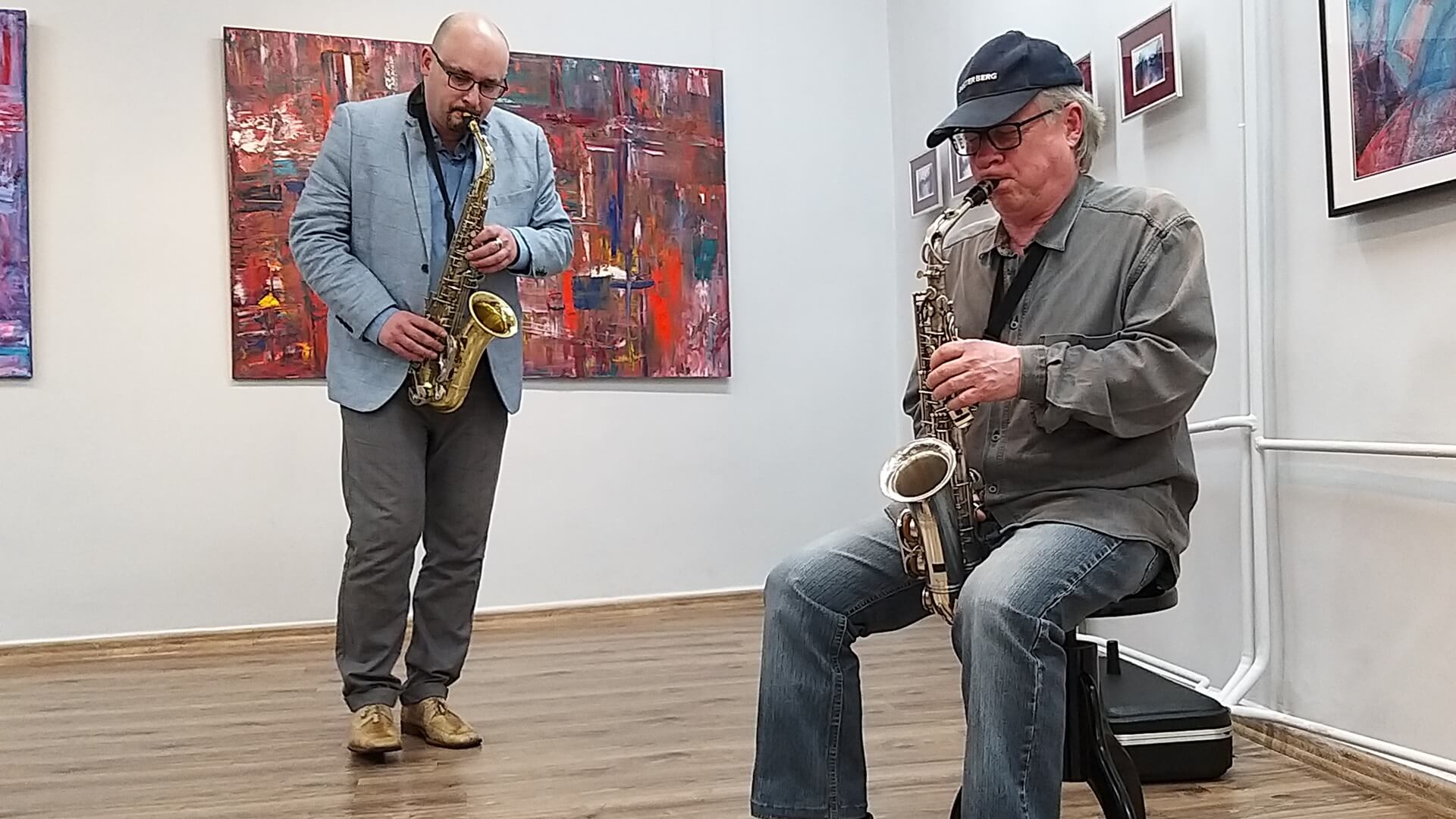 Klaudiusz Bogusłowicz, gdy buduje płaszczyznę obrazu, wyzbywa się wszelkich hamulców, uprzedzeń i zaprasza odbiorców do dialogu i odkrywania "nowych wyobraźni". Na wernisażu usłyszeliśmy też koncert pt. "Dialogi na 2 saksofony" w wykonaniu projektu "Schizis" Klaudiusza Bogusłowicza i Piotra Zielika.