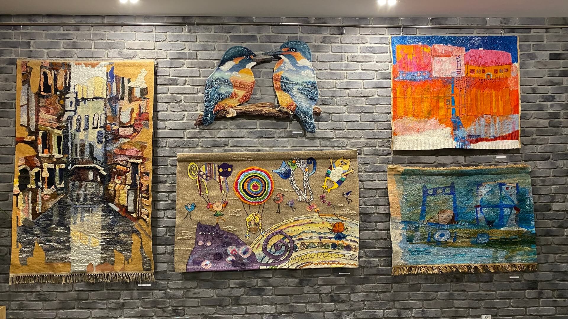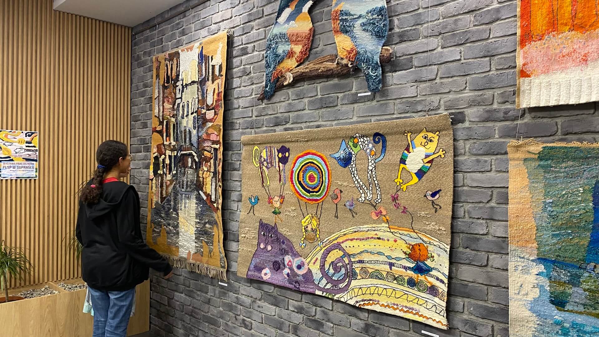 Na wystawie można zobaczyć zarówno tkaniny artystyczne, nawiązujące do klasycznych technik, jak i nowoczesne realizacje intermedialne.
