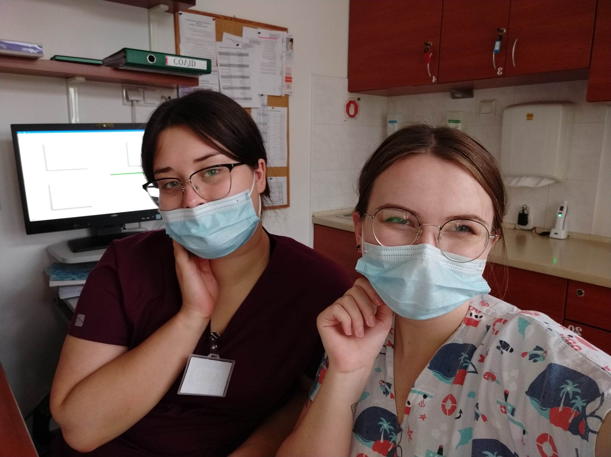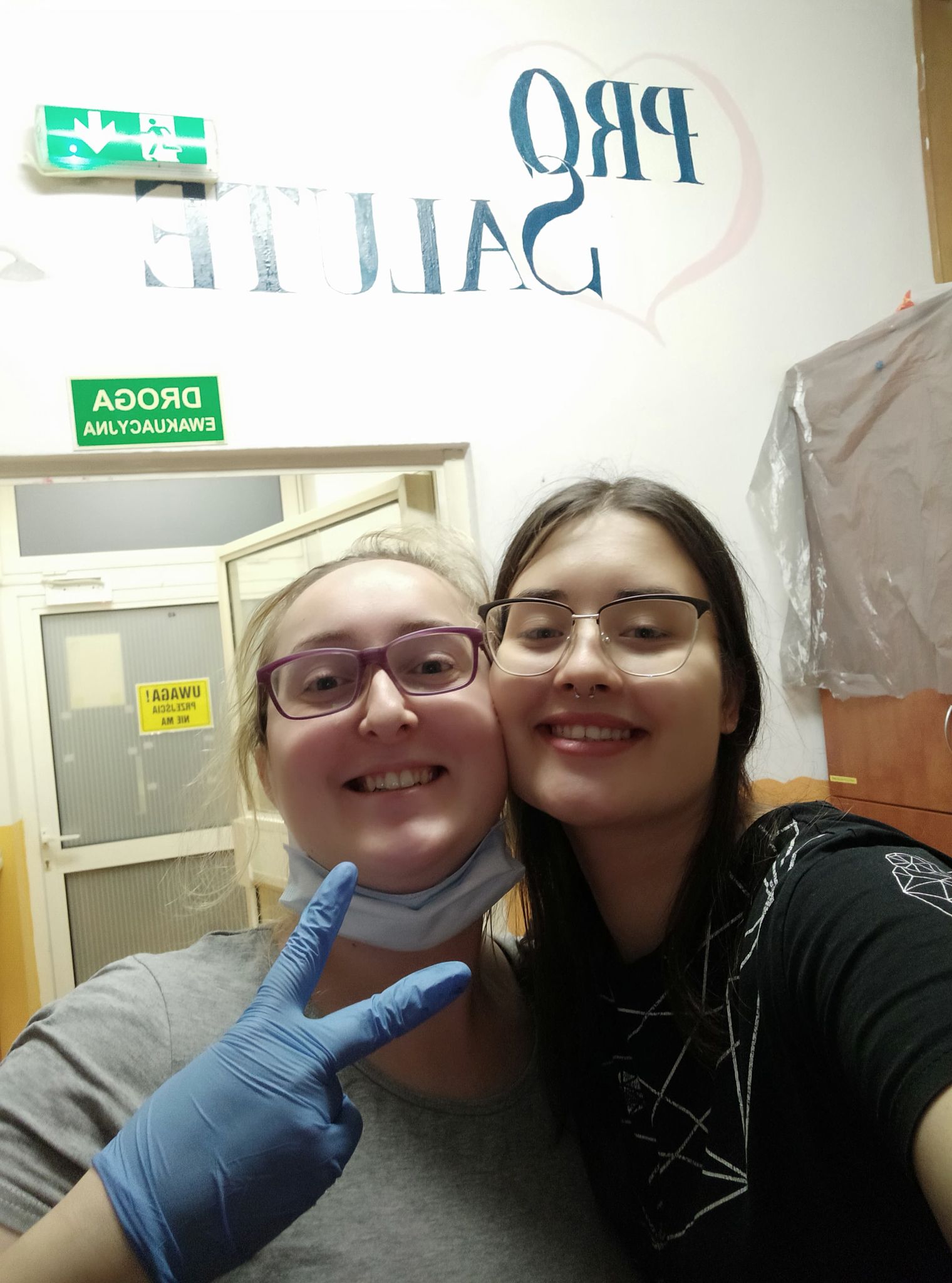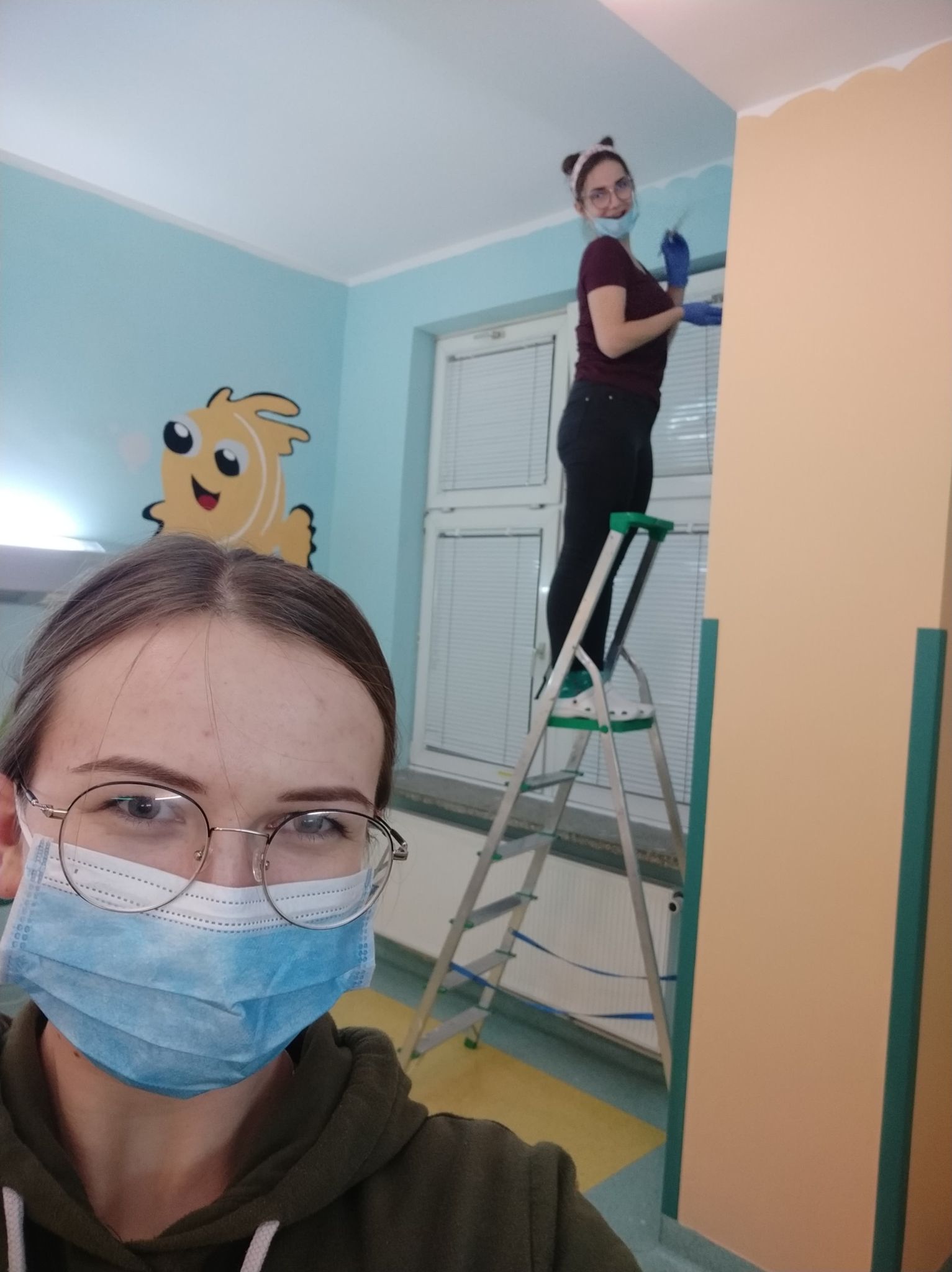 Wiktoria Ciok i Justyna Żygałło. Malowanie oddziału rehabilitacji dziecięcej w USK w ramach wolontariatu z grupą Salute, fot. Justyna Żygałło