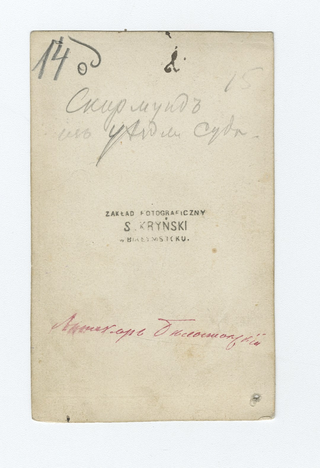 Okazało się, że zdjęcia są autorstwa Szlomy Kryńskiego, pioniera fotografii w Białymstoku. Tropem tego zapomnianego artysty, podąża od lat historyk hobbysta, polski prawnik, dr hab. Sławomir Presnarowicz, profesor Uniwersytetu w Białymstoku, pracownik Katedry Finansów Publicznych i Prawa Finansowego Wydziału Prawa UwB.