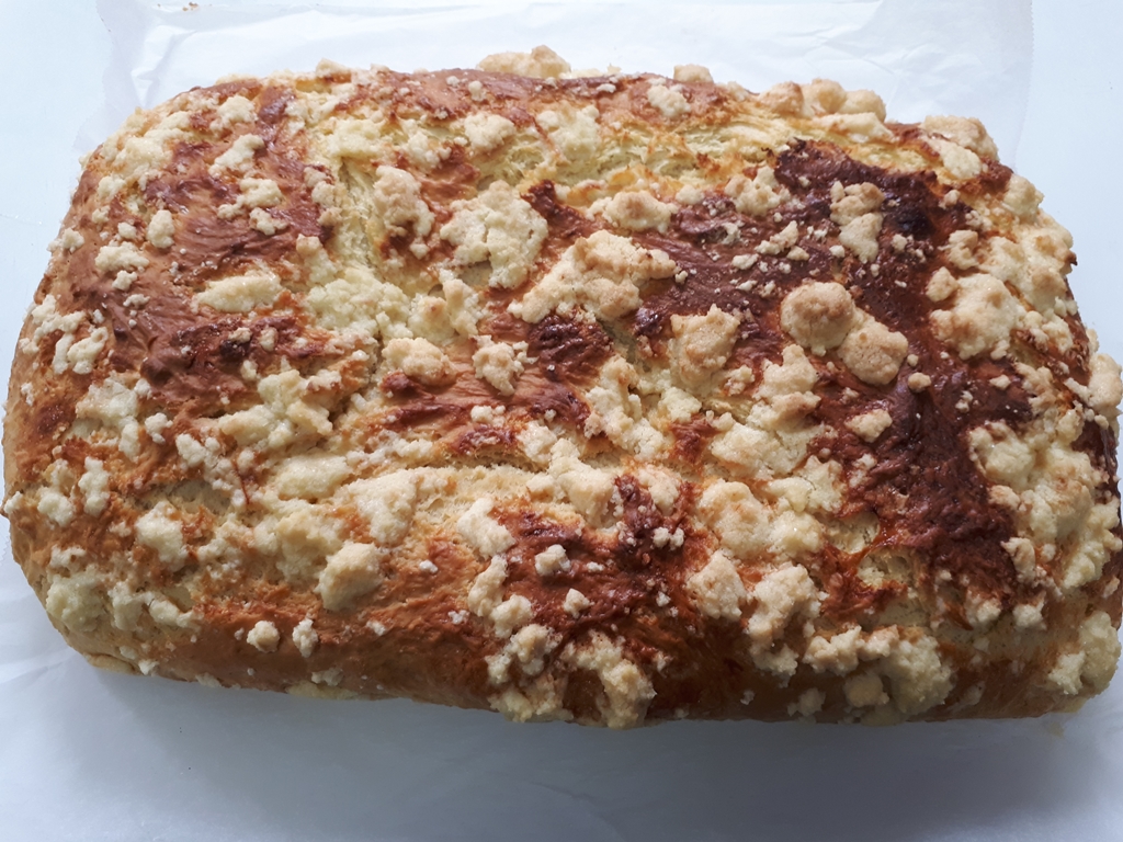 Do miski wsypujemy mąkę. Drożdże kruszymy i zasypujemy cukrem. Wszystko zalewamy małą ilością mleka i odstawiamy na ok. pół godziny. Następnie dodajemy resztę mleka, rozpuszczone masło i żółtka. Masę długo mieszamy i odstawiamy na pół godziny do wyrośnięcia. Przykrywamy ją ściereczką. Kolejno ciasto wkładamy na blachę, posypujemy je kruszonką i wstawiamy do piekarnika na 40 minut. Pieczemy w 180 stopniach.