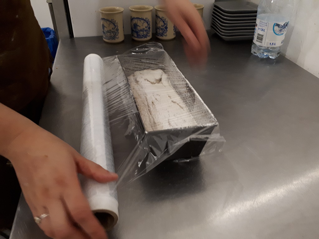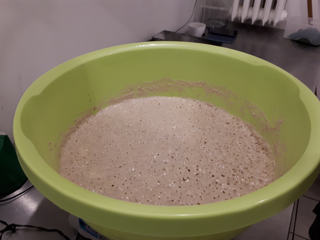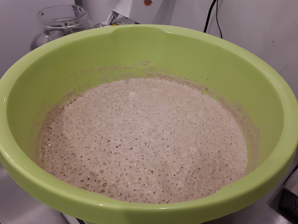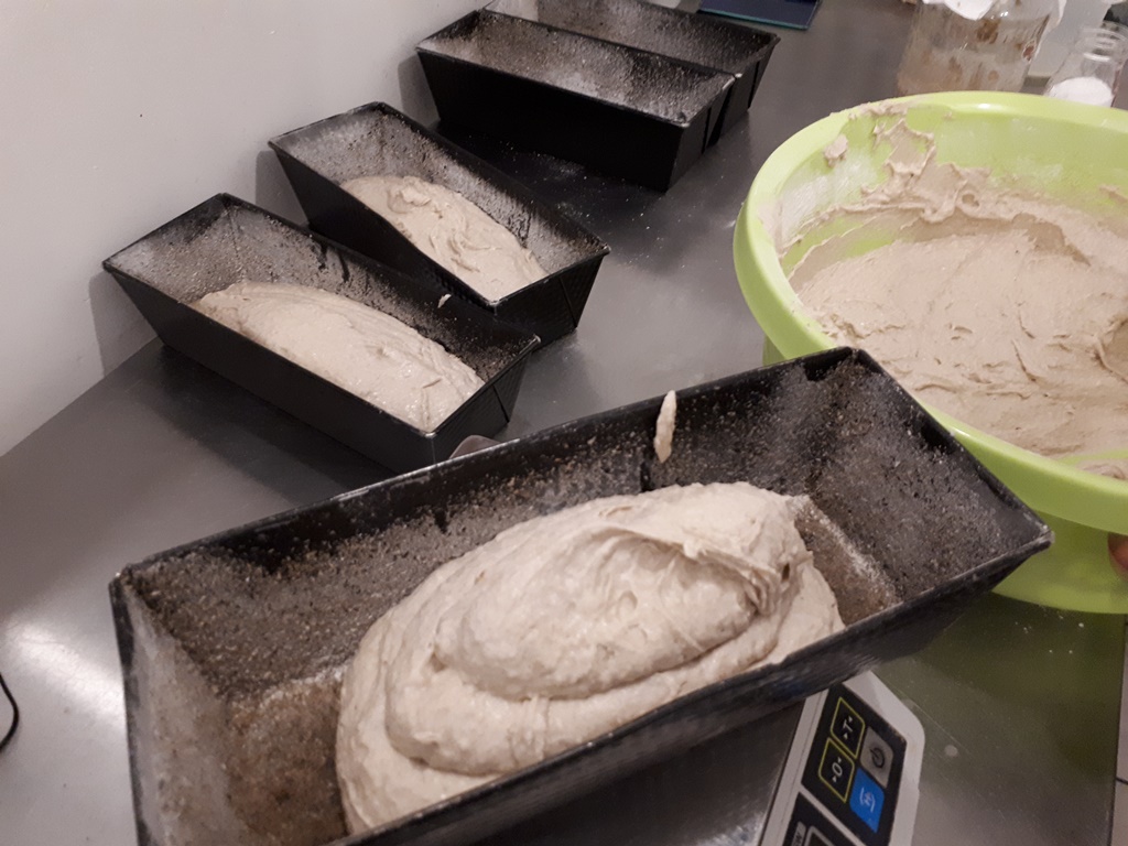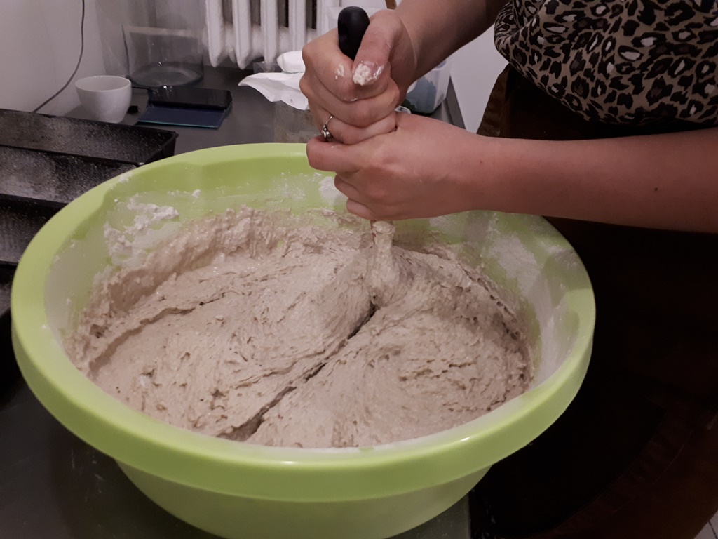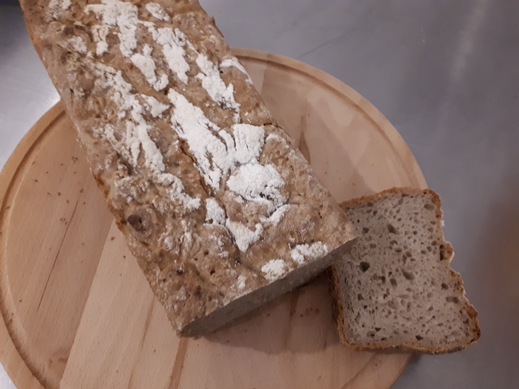 Chleb: Do 50 gram zakwasu dodajemy 150 gram mąki żytniej jasnej, i do tego 150 gram wody. Zaczyn musi odczekać przynajmniej 12 godzin, żeby urósł. Następnie dodajemy 400 gram wody, 400 gram mąki i 2 łyżeczki soli. Wszystko mieszamy. Ciasto nakładamy do blaszek i posypujemy mąką. Blachę z ciastem należy zafoliować. Po 3 godzinach, kiedy ciasto wyrośnie, chleb wkładamy do rozgrzanego pieca. Pieczemy ok. 40 minut w temperaturze 210 stopni.