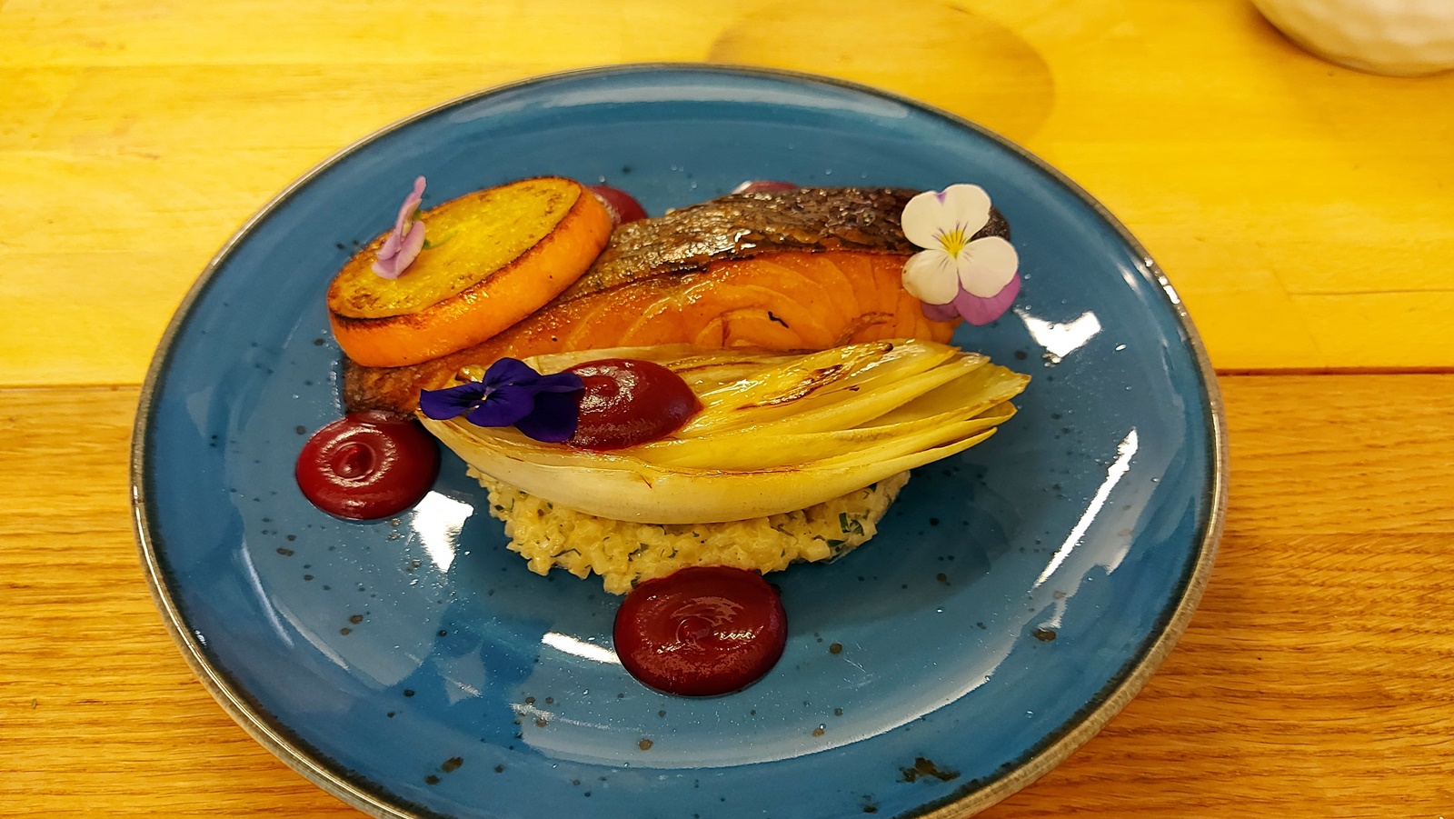 Łosoś z risotto z selera i z cykorią - przepis Mateusza Pietranika z Supraśla.