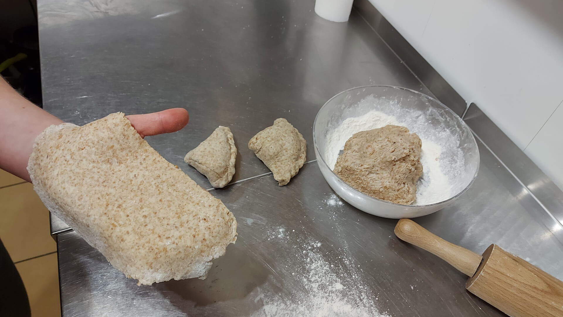 ciasto: 200 g mąki pszennej, 200 g mąki pszennej graham (lub żytniej), 100 g roztopionego klarowanego masła, 150 ml wody zimnej przegotowanej, sól
