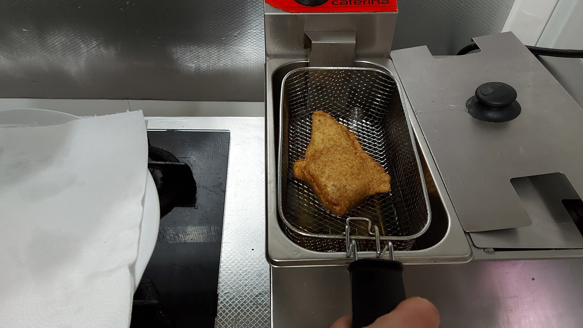 Smażymy w oleju rozgrzanym do 170-180 stopni Celsjusza, aż się pierogi zarumienią.
