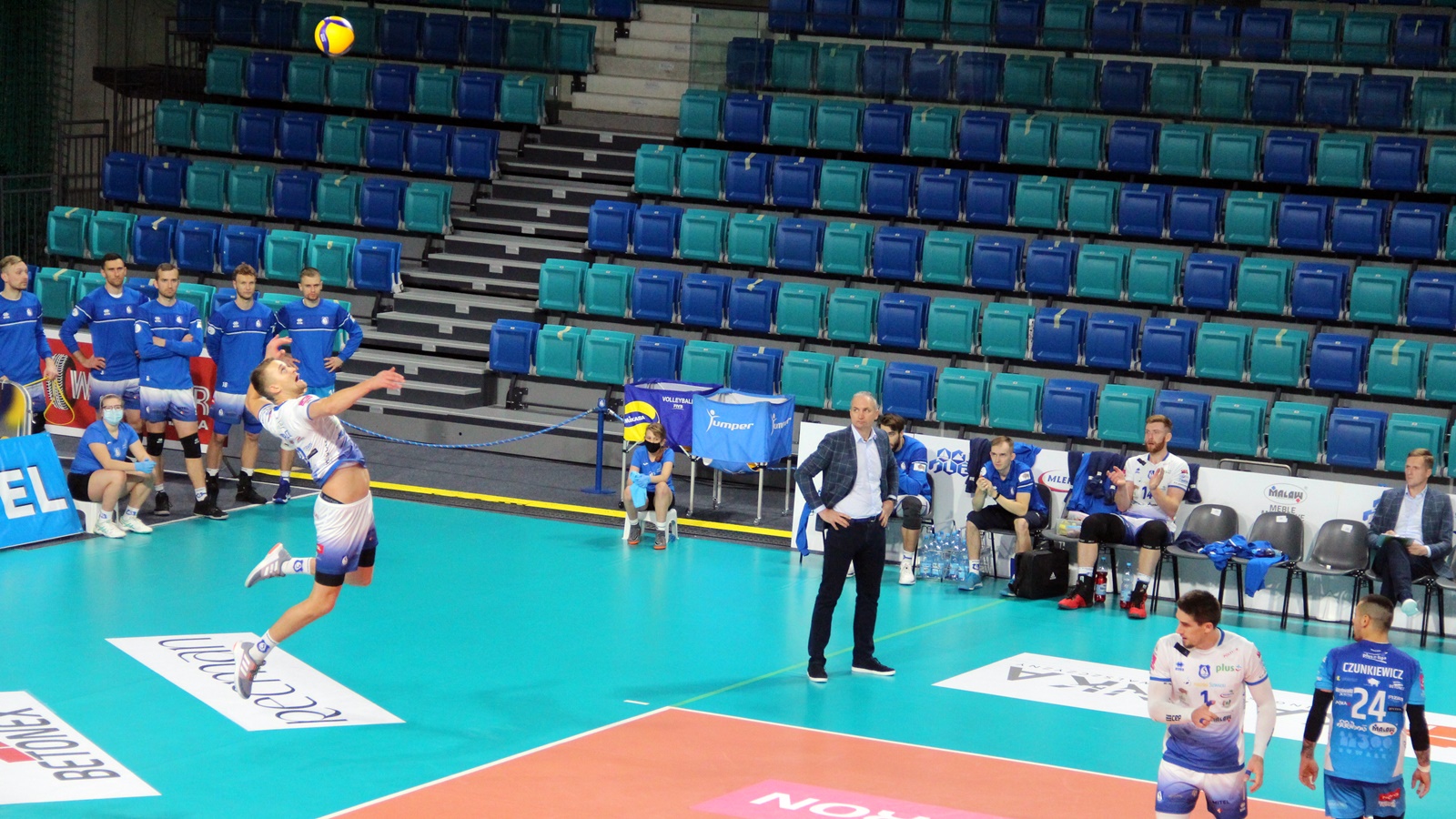 Jastrzębski Węgiel wyszedł w składzie: Louati, Bucki, Wiśniewski, Kampa, Gładyr, Szymura, na libero Popiwczak.