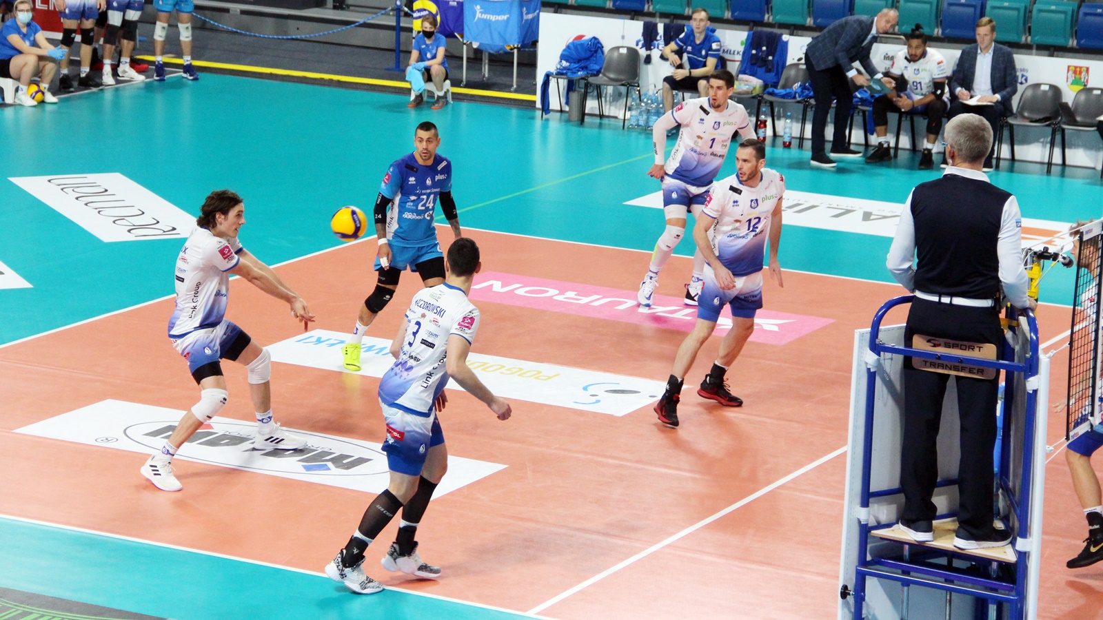 Gospodarze zaczęli następująco: Sapiński, Bołądź, Russeaux, Rudzewicz, Tuaniga, Waliński oraz libero - Mateusz Czunkiewicz.