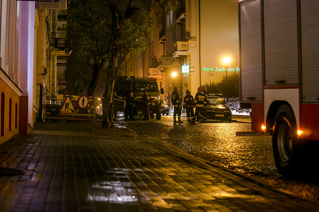 Ewakuowano m.in. kamienicę przy ulicy Dwornej 21 i sąsiadujący z nią bank. Taką decyzję podjęli saperzy, którzy usuwali niewybuch znaleziony przez pracowników firmy remontowej. Pocisk leżał kilkadziesiąt centymetrów pod powierzchnią chodnika.