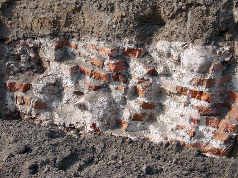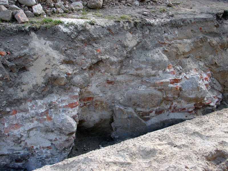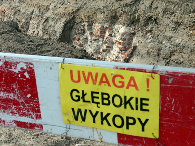 Fragmenty fundamentów wieży XVII-wiecznego kościoła odsłonięto w Łomży podczas wymiany rur ciepłowniczych (13.06.2016) - fot. A. Dąbrowski