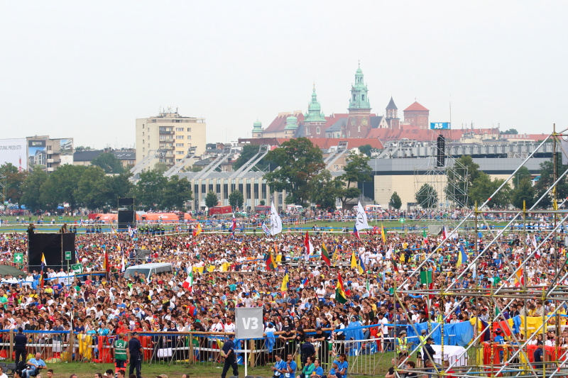 Metropolita krakowski kard. Stanisław Dziwisz, witając na krakowskich Błoniach młodych ludzi ze 187 krajów świata, powiedział: "Przybyliście ze wszystkich kontynentów i narodów, ze wschodu i zachodu, z północy i południa naszego globu. Przynosicie ze sobą wiele doświadczeń. Nosicie w sobie wiele pragnień. Mówicie wieloma językami. Ale od dziś wszyscy będziemy ze sobą rozmawiać językiem ewangelii" – powiedział kard. Dziwisz. "To język miłości. To język braterstwa, solidarności i pokoju" - podkreślił.