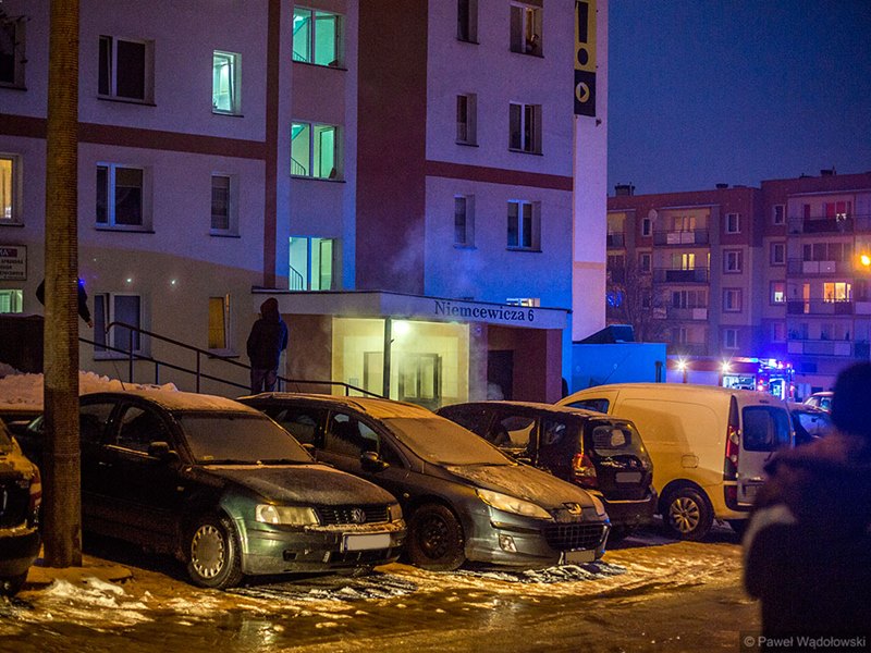 W wieżowcu przy ul. Niemcewicza w Łomży doszło do pożaru piwnicy. Dym przedostał się pionem wentylacyjnym do mieszkania najprawdopodobniej na 6. piętrze.