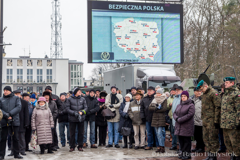 W Białymstoku na placu przed Teatrem Dramatycznym od 12:00 do 17:00 będzie można oglądać sprzęt wojskowy, m.in. wyrzutnię "Malutka", czołg Leopard, Rosomaka, wozy rozpoznawcze, bojowe, wykrywania skażeń i pojazd patrolu saperskiego. O 14:00 planowana jest transmisja uroczystości powitania w Polsce wojsk amerykańskich z Żagania.