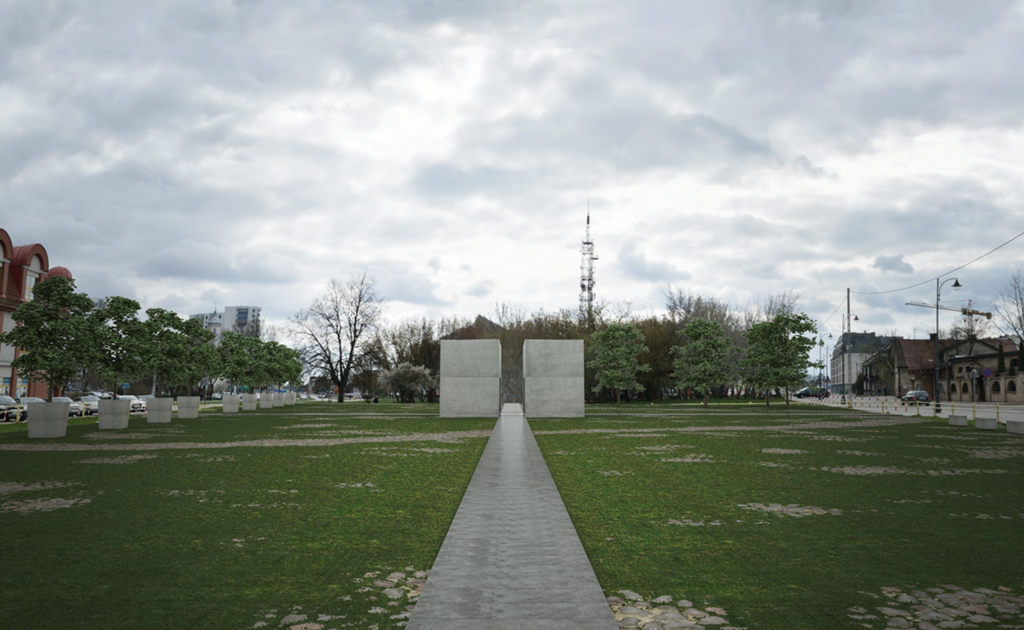 Artystyczną instalację na Rynku Siennym stanowić będą płaskorzeźby z cyklu "Ślady zwielokrotnione". Z drzew w pojemnikach lub z niskich roślin utworzona będzie zielona pierzeja. Pod instalacją znajdzie się krypta, w której spoczną szczątki po ekshumacji kilku pochówków.