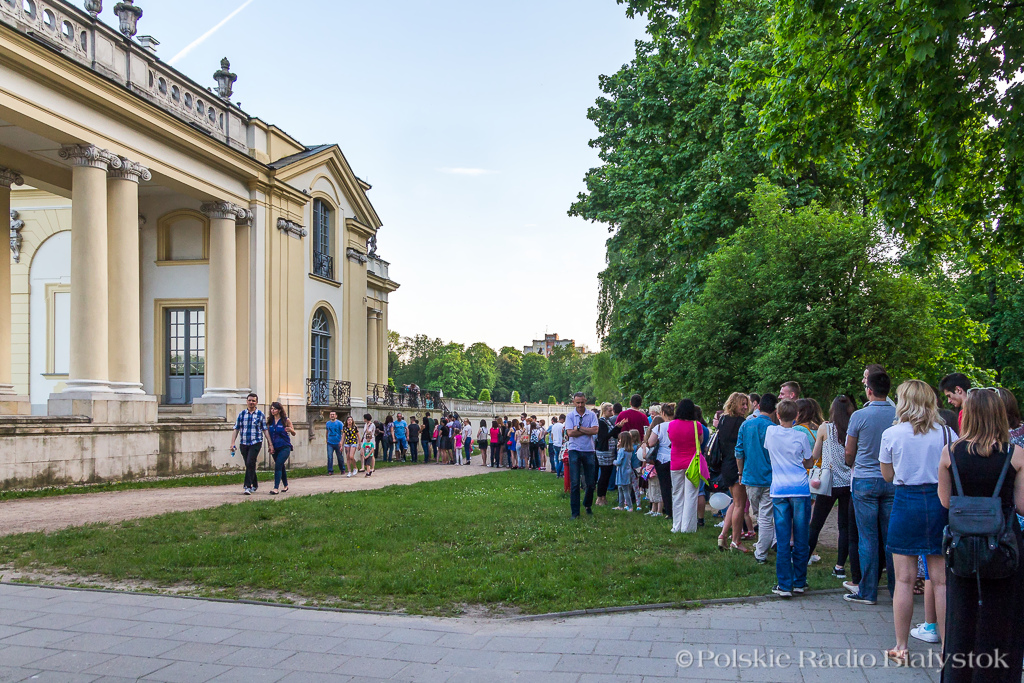 Na Dziedzińcu Pałacu Branickich można było oglądać pokazy rekonstrukcje Grupy Wschód, pasjonującej się historią ziemi podlaskiej, zaś w Pałacu poznać świat mikrokosmosu ludzkiego ciała. Ciekawscy zajrzeli też do piwnic, by obejrzeć system ogrzewania z XVIII wieku. Kto chce obejrzeć, co kryje się w Bramie Wielkiej oraz obejrzeć XVIII-wieczny zegar przy Pałacu Branickich - mógł rozpocząć zwiedzanie od 19:00 - ustawiają się tam długie kolejki.