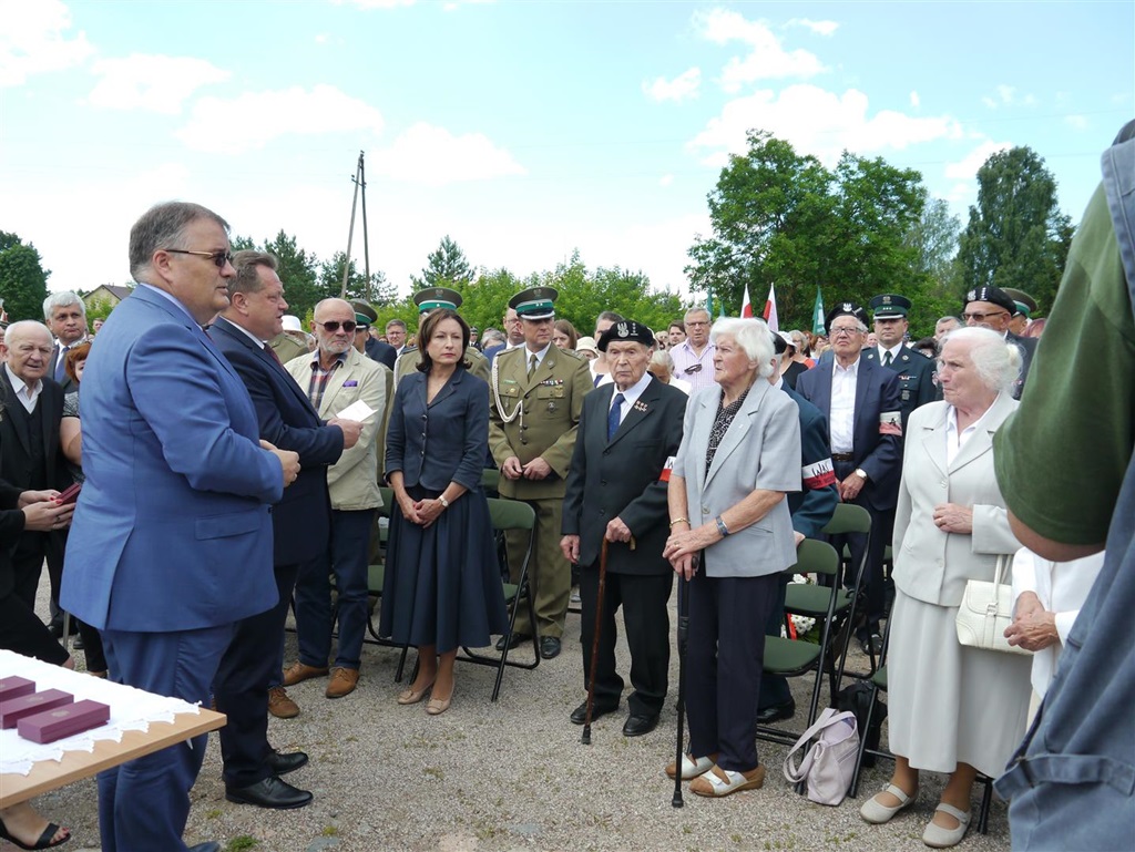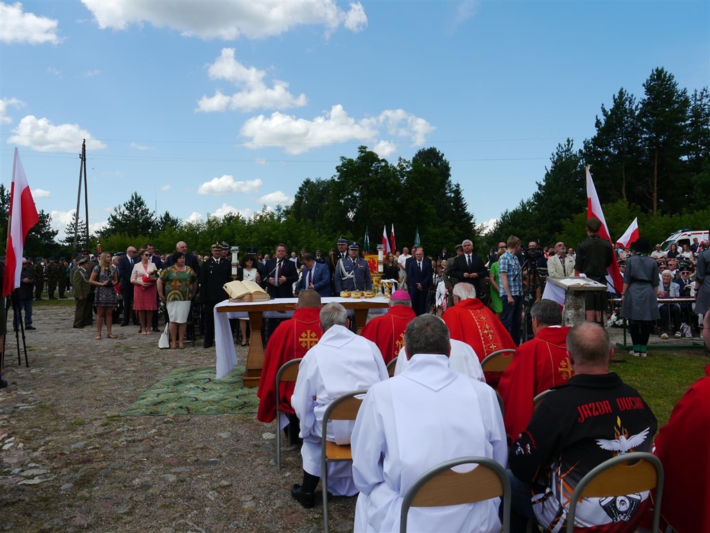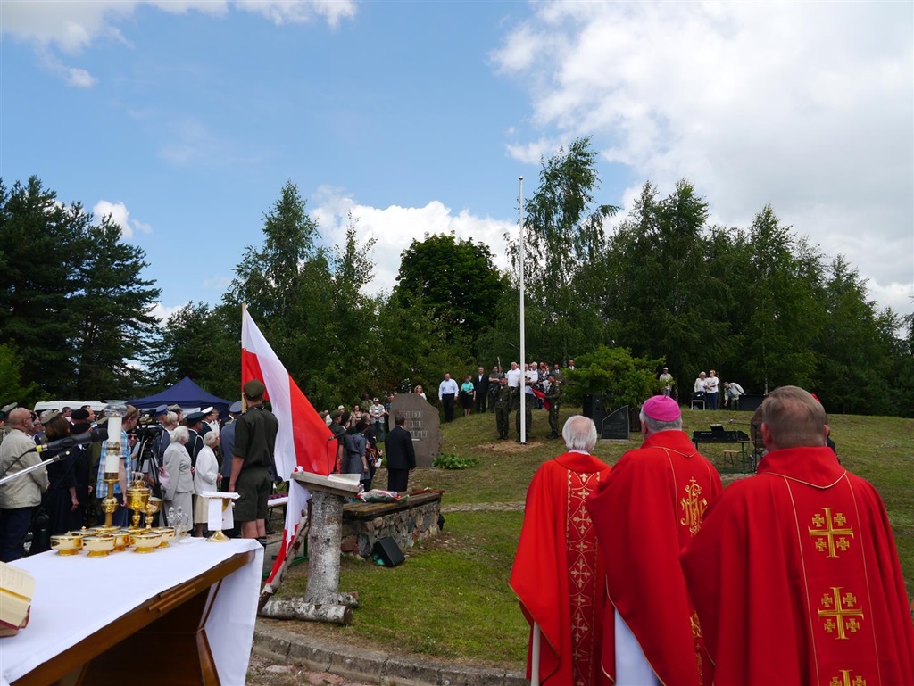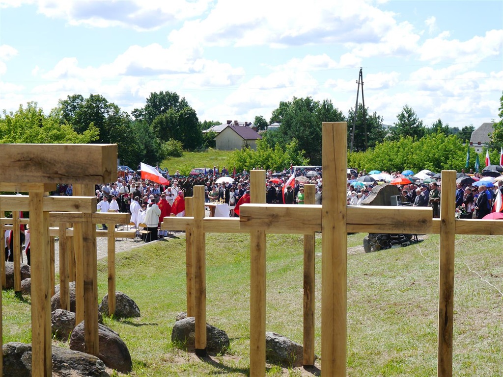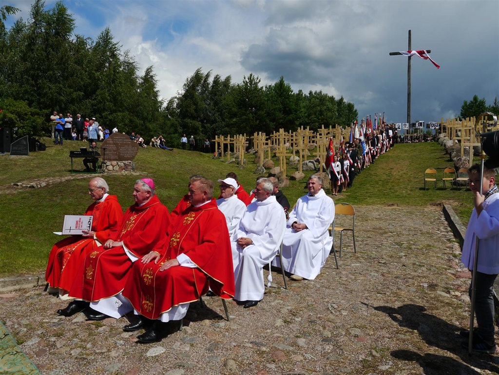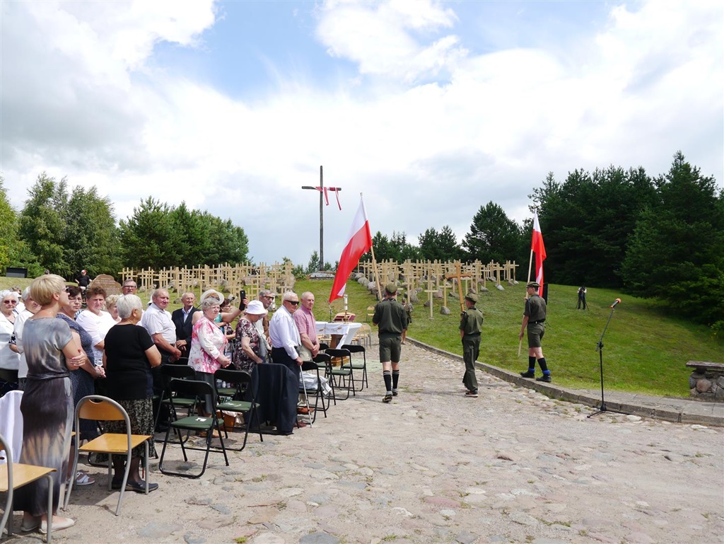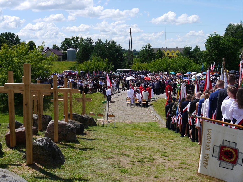 - W tym symbolicznym miejscu gromadzimy się od wielu lat, żeby modlić się za tych, którzy zostali zamordowani w obławie augustowskiej. Uroczystość odbywa się w nowej scenerii, bo niedawno na wzgórzu pojawiły się dębowe krzyże - mówił podczas uroczystości wiceminister spraw wewnętrznych Jarosław Zieliński.