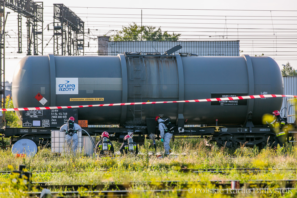 Radio Białystok | Wiadomości | Wiadomości - Rozszczelnienie cysterny na bocznicy kolejowej w Białymstoku