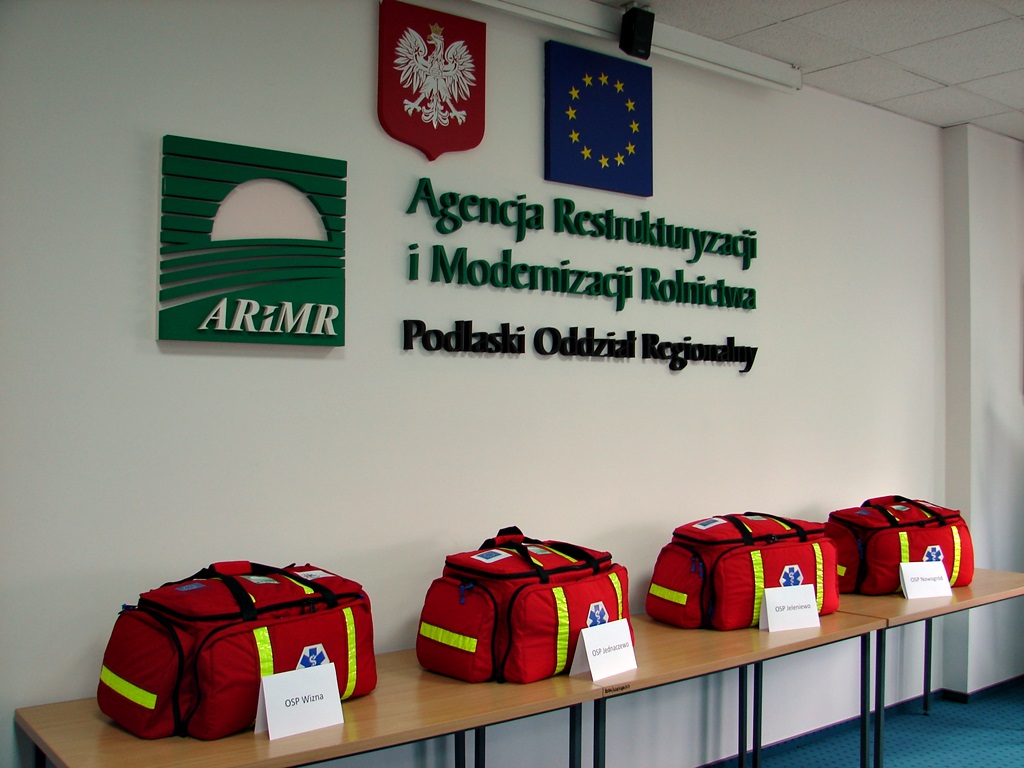 Cztery torby ratunkowe R1, każda o wartości około 1,2 tys. zł., przekazał strażakom – ochotnikom dyrektor Podlaskiego Oddziału Regionalnego Agencji Restrukturyzacji i Modernizacji Rolnictwa. To nagrody za udział w konkursie "Bezpieczna zabawa i praca na wsi podczas wakacji".