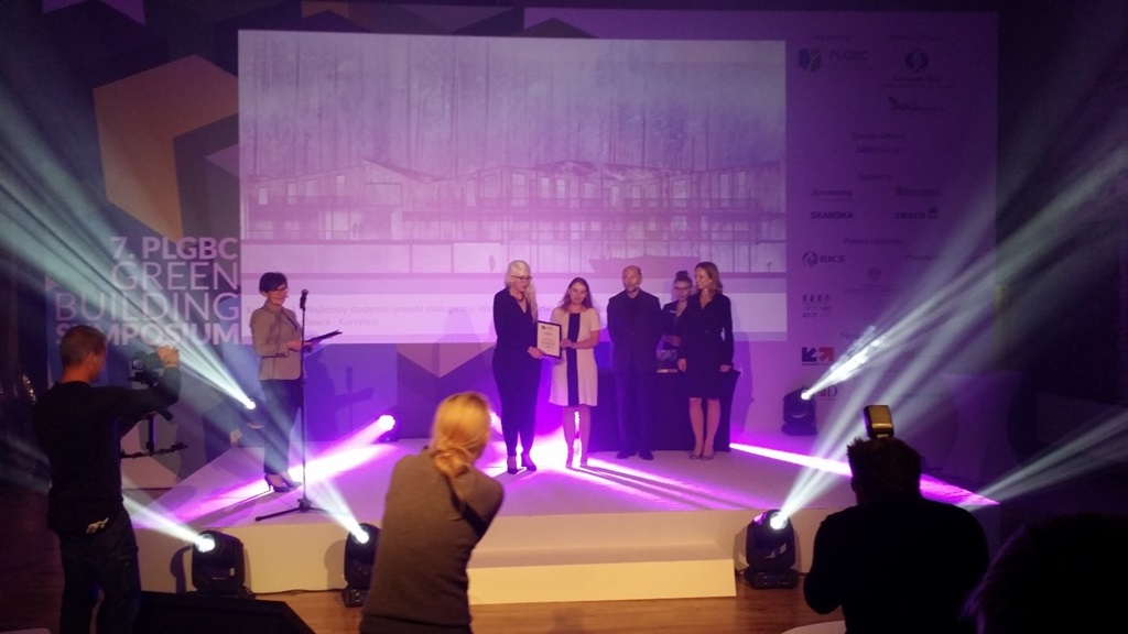 Główną nagrodę w kategorii "najlepszy ekologiczny projekt - studencki" otrzymała praca dyplomowa autorstwa Anny Jankowskiej pt. "Ośrodek Sportowo - Rekreacyjny w Ogrodniczkach", wykonana pod kierunkiem dr inż. arch. Adama Tureckiego.