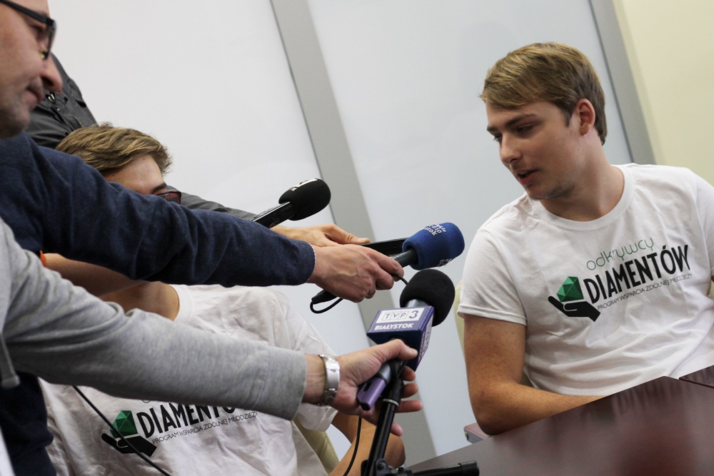Obecnie kapituła "Odkrywców Diamentu" przyznała granty dwóm projektom uczniowskim z Zespołu Szkół Elektrycznych w Białymstoku. Prof. Dzienis mówił, że ta szkoła składa najwięcej projektów i jest głównym beneficjentem programu. Dodał, że to dzięki dobrym nauczycielom, którzy potrafią zachęcić młodzież do działania.