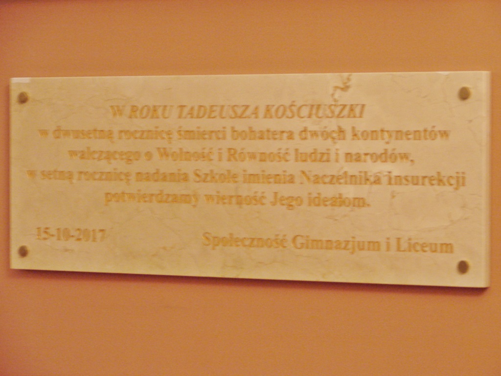 "W setną rocznicę nadania Szkole imienia Naczelnika Insurekcji potwierdzamy wierność Jego ideałom" - taki napis widnieje na tablicy ufundowanej przez społeczność gimnazjum i liceum.