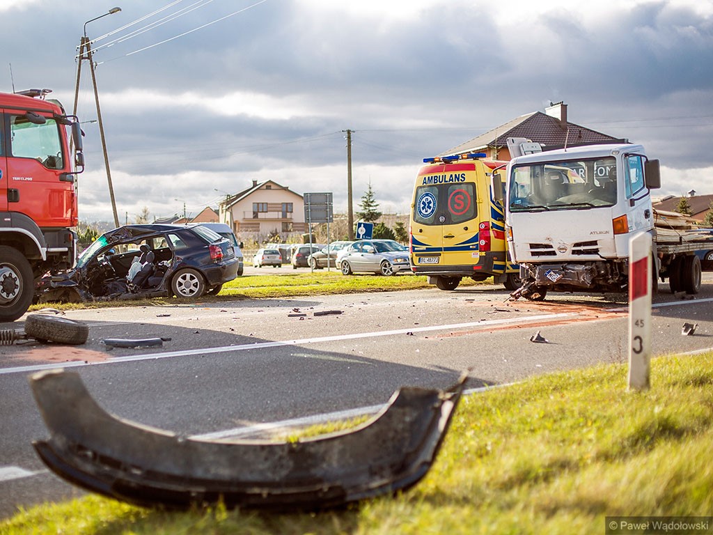 Trzy osoby trafiły do szpitala. Jedna z nich była uwięziona w samochodzie. Konieczna była pomoc strażaków ze specjalistycznym sprzętem. Na odcinku Łomża - Ostrołęka są utrudnienia. Nie wiadomo jak długo potrwają.