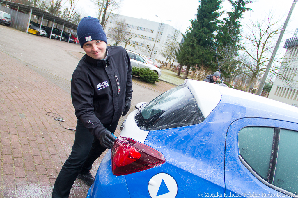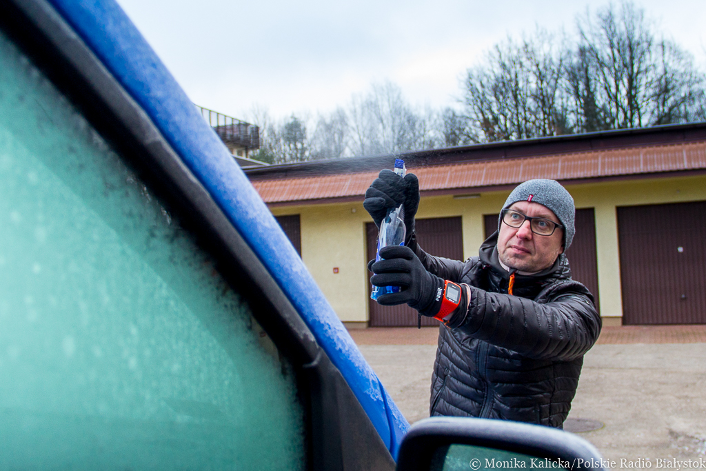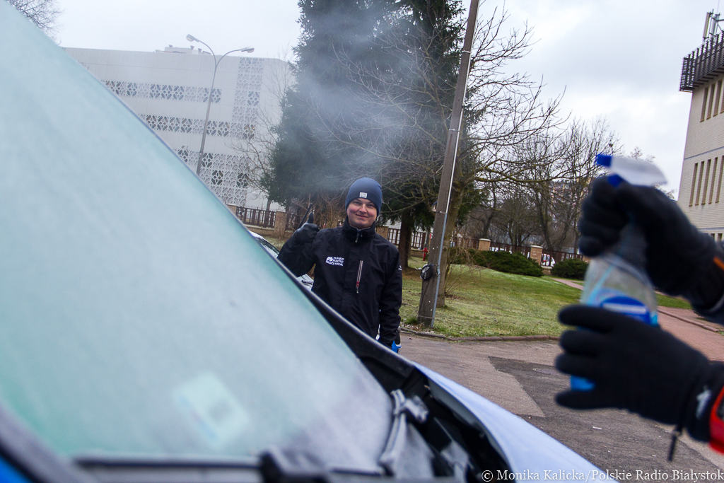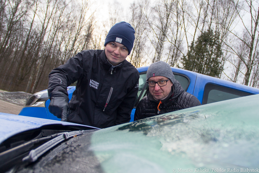 Metody na odmrażanie szyb w autach testują Kamil Kalicki i Andrzej Ryczkowski, fot. Monika Kalicka