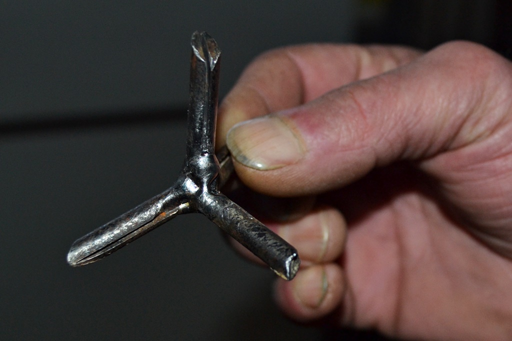 Zgłosiło się do mnie czterech kierowców z nietypowym znaleziskiem w oponie. To był zespawany trójnóg z naostrzoną nóżką uniesioną do góry. Dobrze, że ktoś je zauważył i w porę wyjęliśmy, bo to mogło skończyć się tragicznie - mówił Sławomir Jakubowski właściciel zakładu wulkanizacyjnego, do którego trafiły pechowe auta.