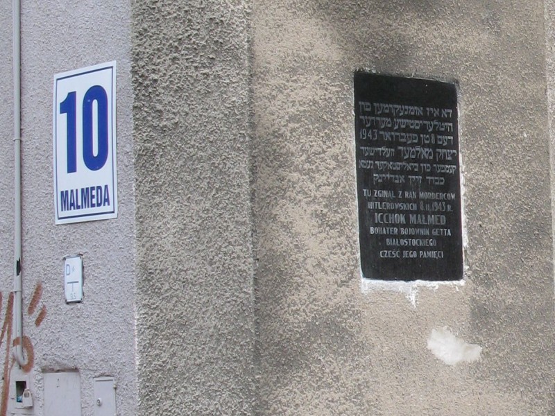 Odsłonięta w 1948 roku tablica upamiętniająca Icchoka Malmeda znajduje się na budynku nr 10 przy ulicy noszącej obecnie jego imię w centrum Białegostoku. Inskrypcja na tablicy, po hebrajsku i po polsku, mówi o tym, że w tym miejscu zginął "bohater bojownik getta białostockiego". Przy niej po południu władze miasta złożyły wieniec, zapalono lampiony i znicze.