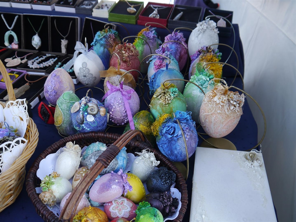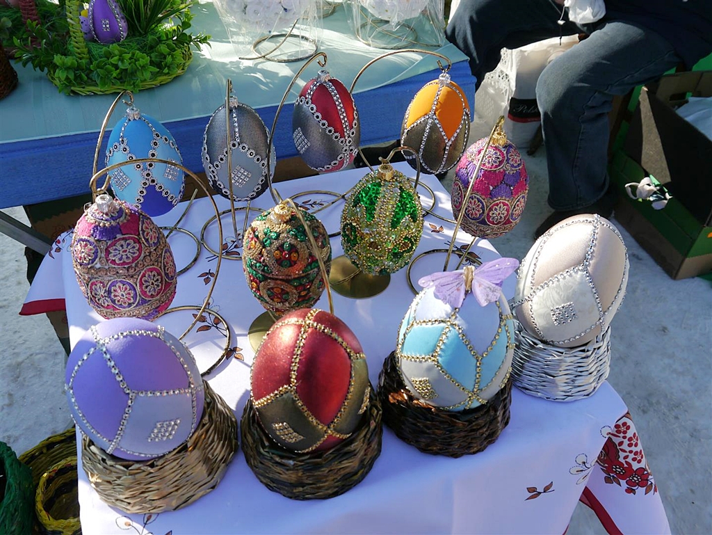 Swoje pisanki zdobione słomą przywiozła Maryna Jaremczyk z Grodna. Jak mówiła, to bardzo czasochłonne zajęcie. Najpierw wydmuszkę trzeba pomalować, następnie naciąć cieniutko słomę, ułożyć wzory i przykleić. W ten sposób Maryna Jaremczyk robi wydmuszki od kilu lat, a jej pisanki dotarły m.in. do Australii i Stanów Zjednoczonych.