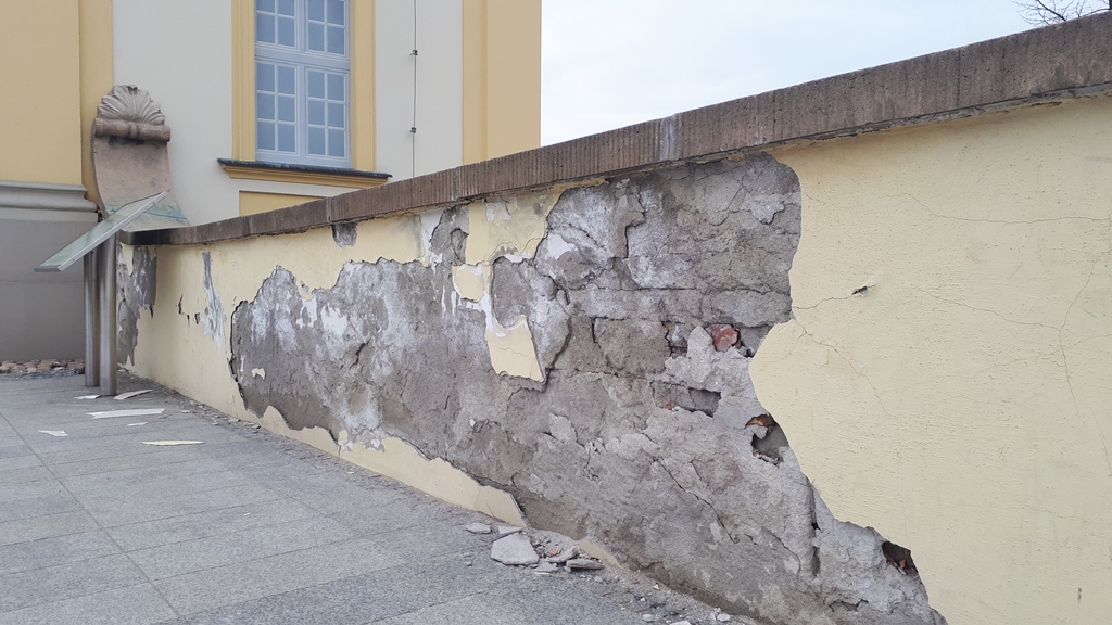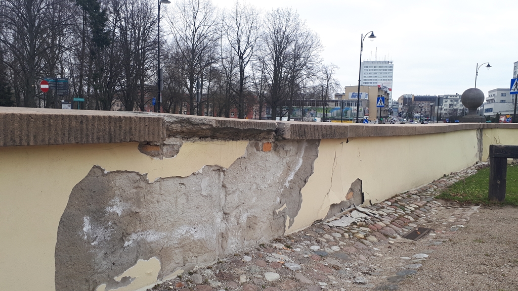 O problemie z ogrodzeniem i odpadającym tynku wiedzą władze Białegostoku i próbują rozwiązać problem.