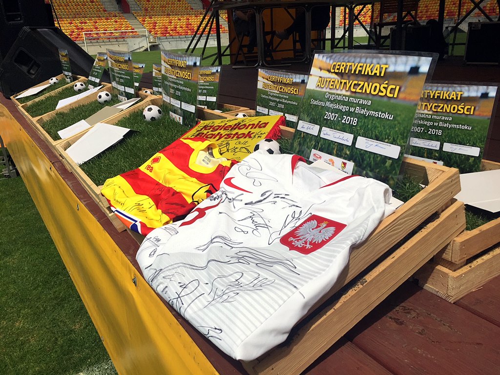 Po 11 latach użytkowania będzie wymieniona murawa na Stadionie Miejskim w Białymstoku, gdzie swoje mecze rozgrywają piłkarze Jagiellonii. W związku z tym można było zabrać kawałek historii do domu, a przy okazji wspomóc akcję charytatywną.