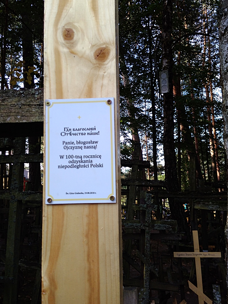 Po zakończeniu niedzielnej głównej liturgii na wzgórzu poświęcony został kilkumetrowy drewniany krzyż z napisem "Panie błogosław Ojczyznę naszą!", który będzie upamiętniał setną rocznicę odzyskania przez Polskę niepodległości.