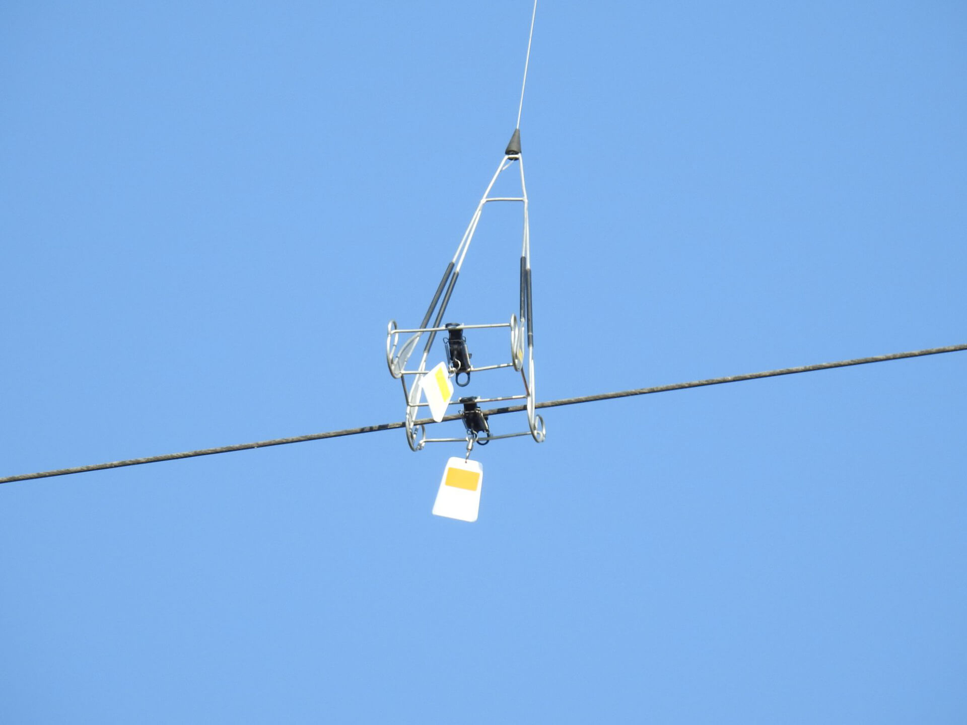 Jednym z najbardziej obiecujących rozwiązań jest montowanie specjalnych znaczników - tabliczek na liniach. Na 700-metrowym odcinku Narwi w okolicach Wizny podlascy ornitolodzy zamontowali ich ponad 70. Po raz pierwszy na świecie robili to także za pomocą drona, dzięki czemu nie trzeba było na czas prac odcinać prądu.