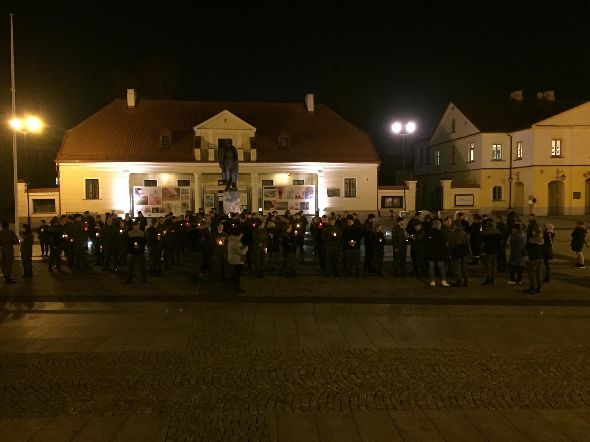 Zawsze Wierny - taki napis utworzyli trzymając w rękach zapalone znicze uczniowie Centrum Szkół Mundurowych w Białymstoku. 250 kadetów zebrało się przed pomnikiem Marszałka Józefa Piłsudskiego w centrum miasta.