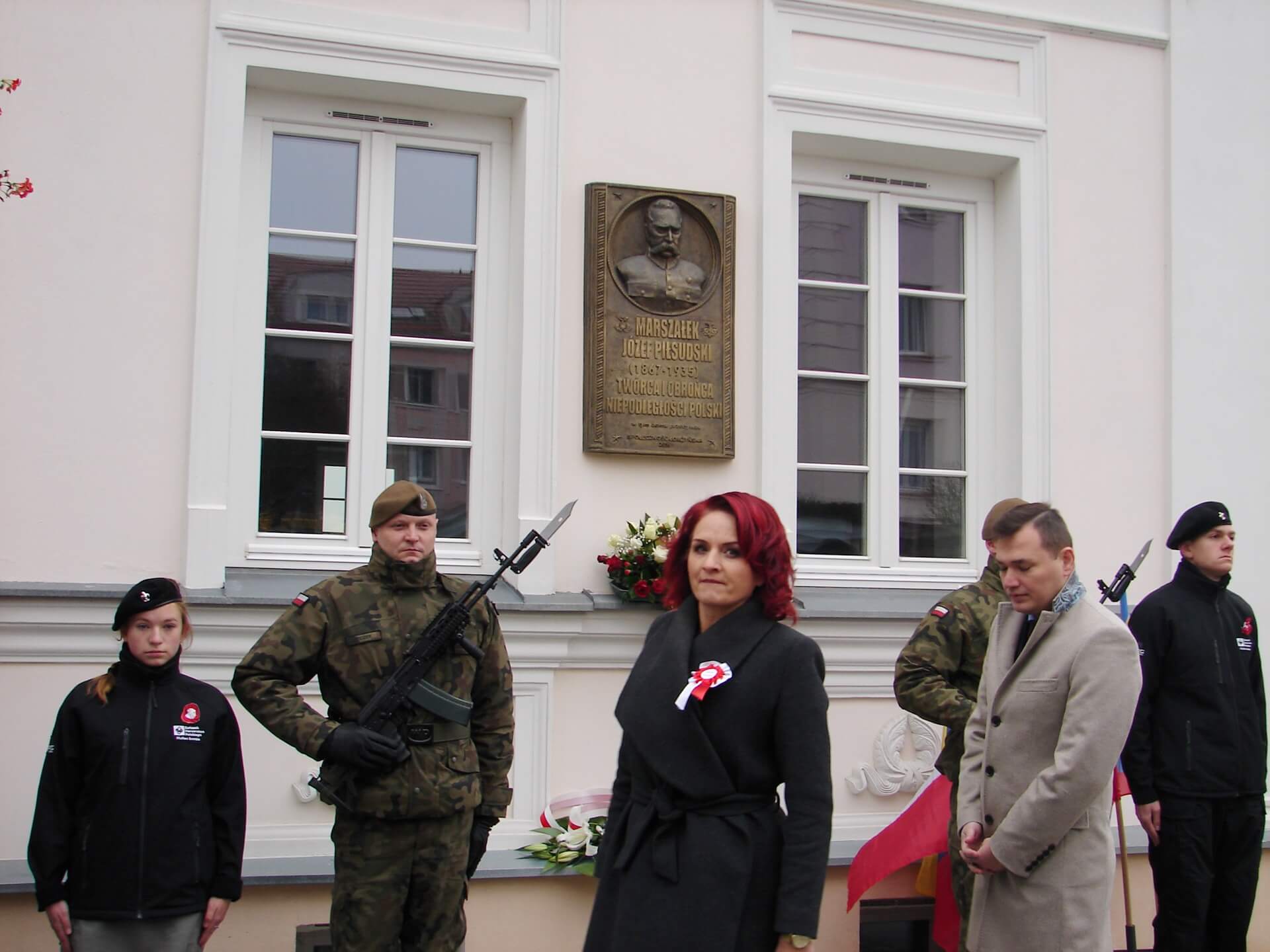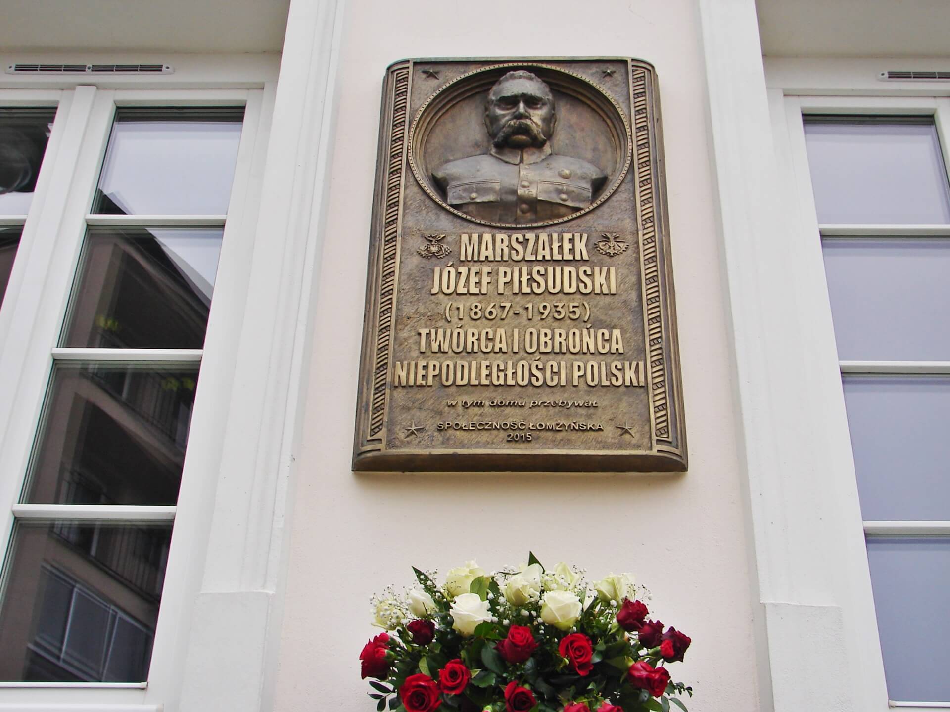 Kolejnym punktem obchodów w Łomży było złożenie kwiatów właśnie przed tablicą Józefa Piłsudskiego na Domku Pastora - miejscu, w którym ukrywał się i mieszkał drugi z najwybitniejszych ojców polskiej niepodległości.