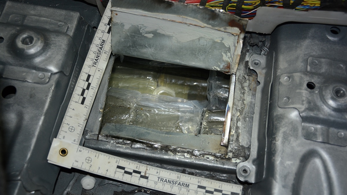 Obraz z kamery potwierdził przypuszczenia funkcjonariuszy Straży Granicznej. W pojeździe znajdowała się podwójna podłoga. Ukrytych w niej było w sumie 68 zamkniętych hermetycznie paczek z suszem roślinnym. Użyty tester narkotyczny wykazał, że jest to haszysz