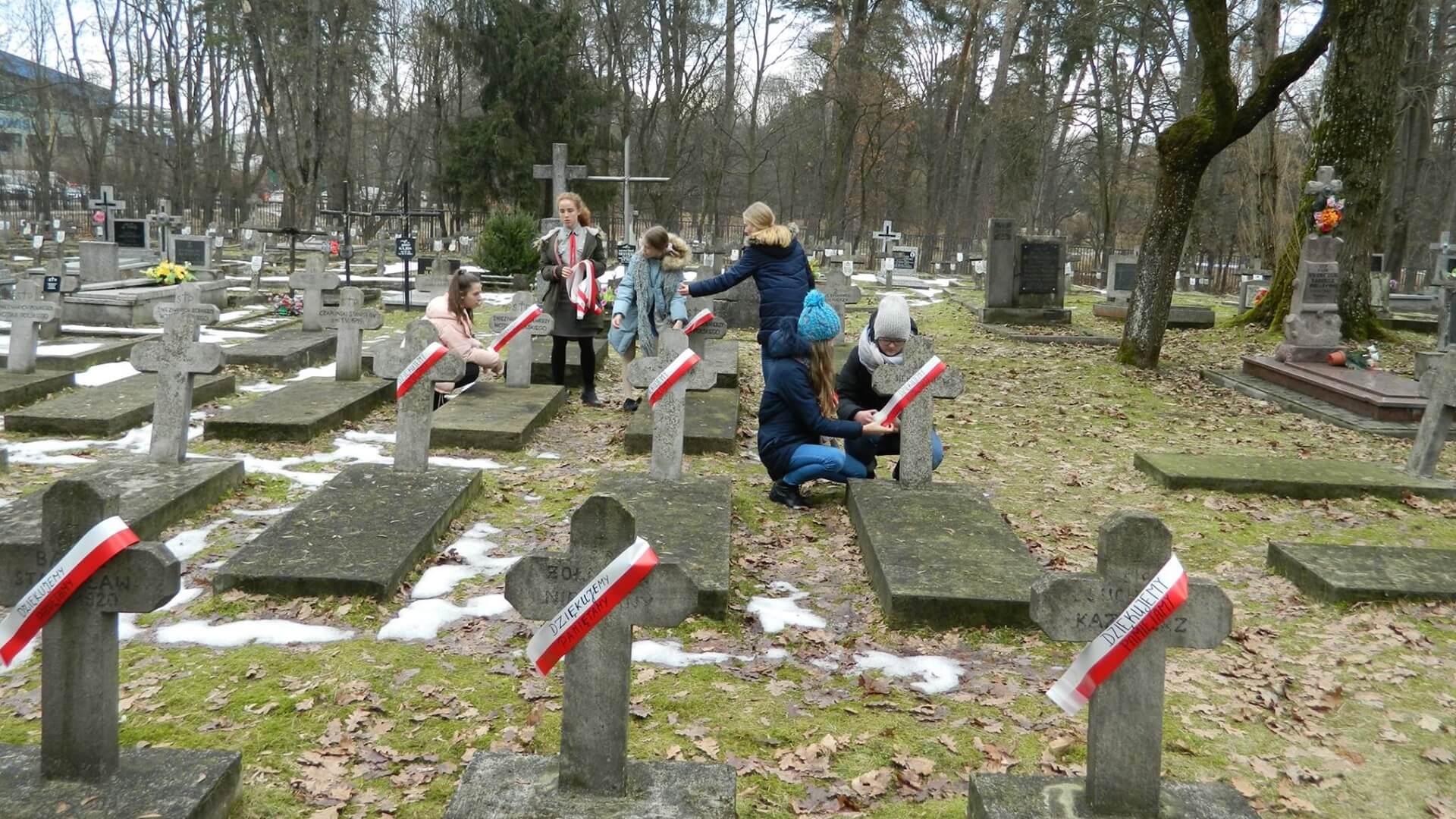 Wcześniej dzieci ze Szkoły Podstawowej Sióstr Misjonarek Świętej Rodziny im. Błogosławionej Bolesławy Lament w Białymstoku z harcerzami na grobach powiesiły biało-czerwone szarfy z napisami "Dziękujemy. Pamiętamy".