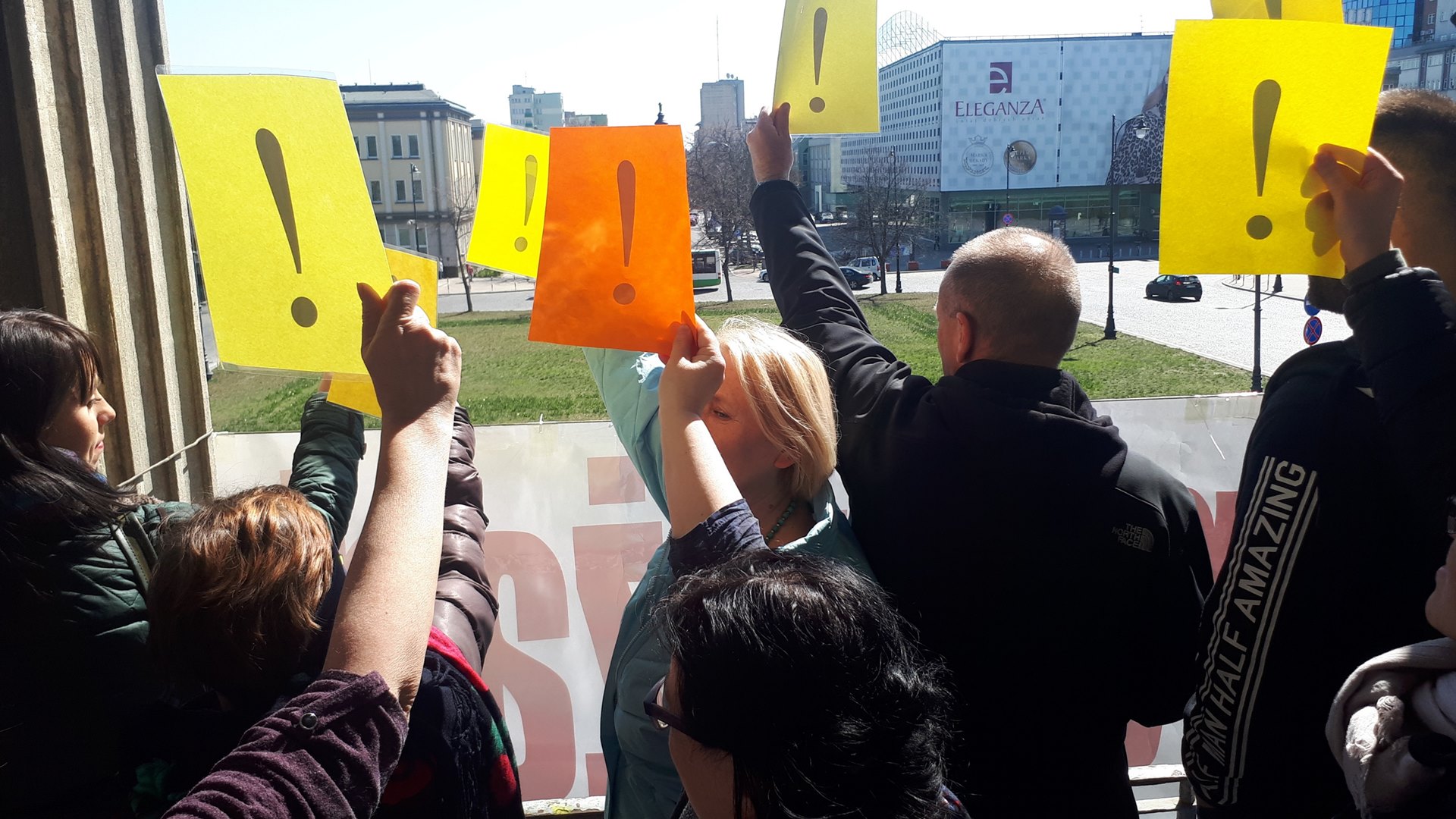 Wiec popierający strajkujących nauczycieli odbył się na balkonie budynku tzw. Domu Partii, gdzie swoje siedziby mają Wydziały Filologiczny i Historyczno-Socjologiczny Uniwersytetu w Białymstoku (UwB). Od początku protestu na balkonie wisi baner: "Popieramy żądania nauczycieli".
