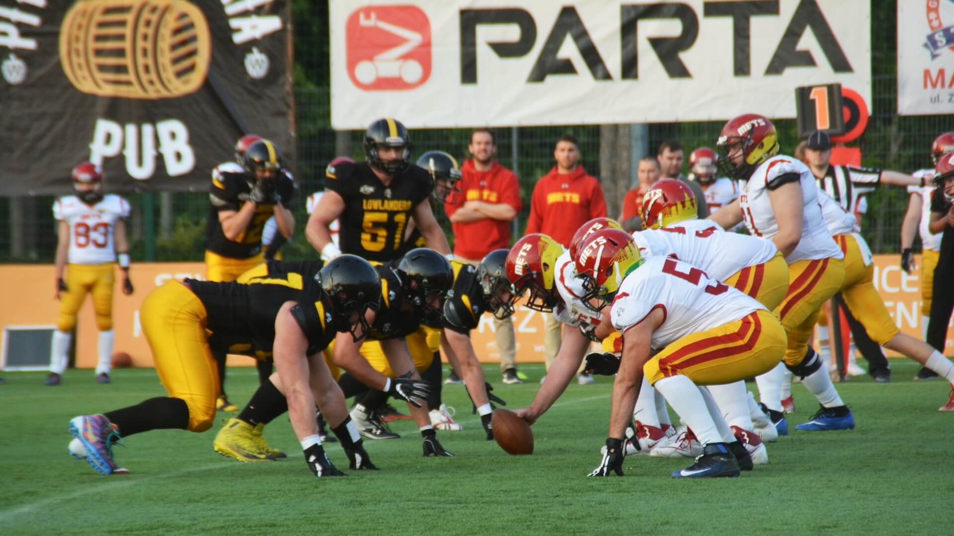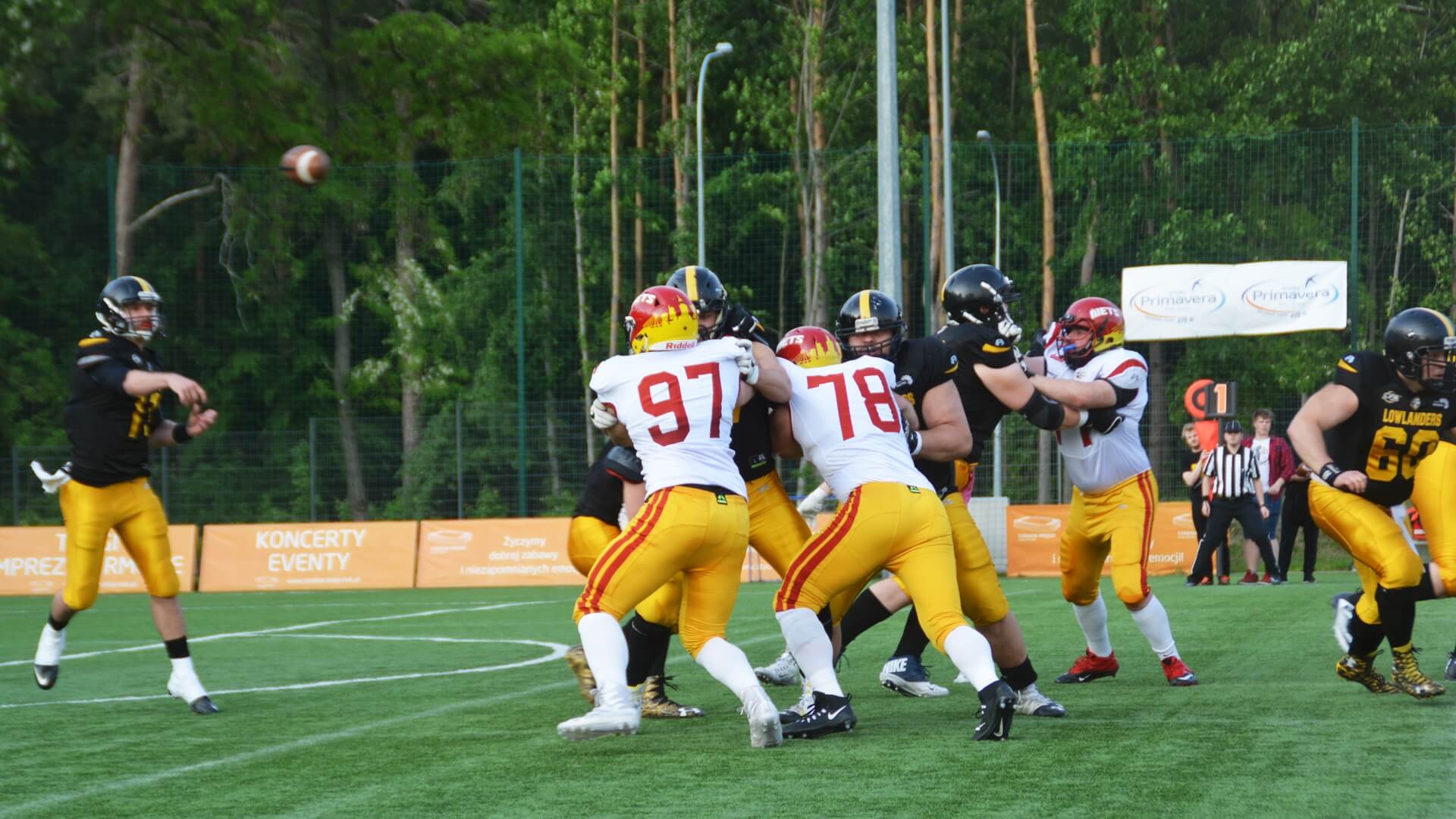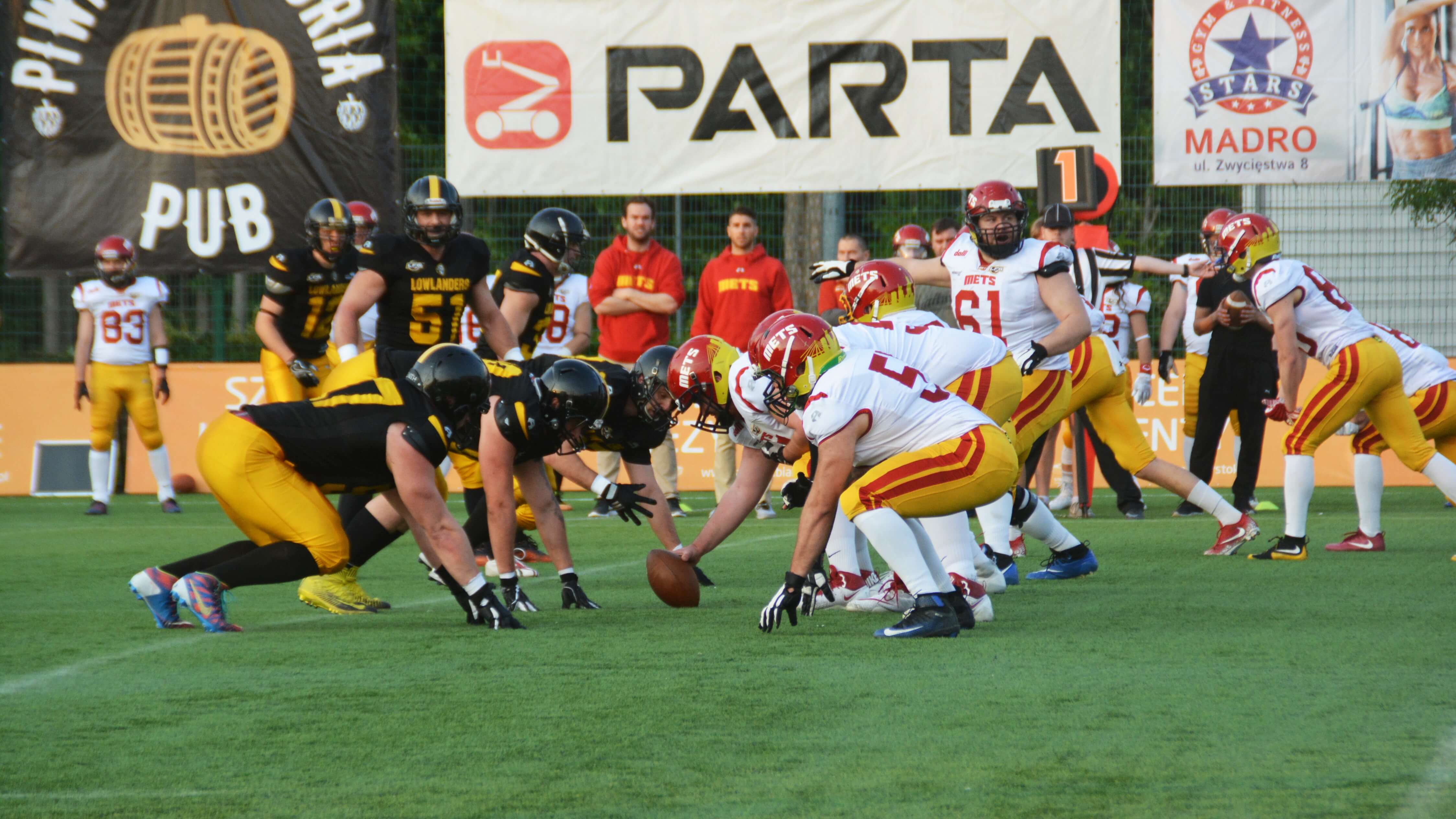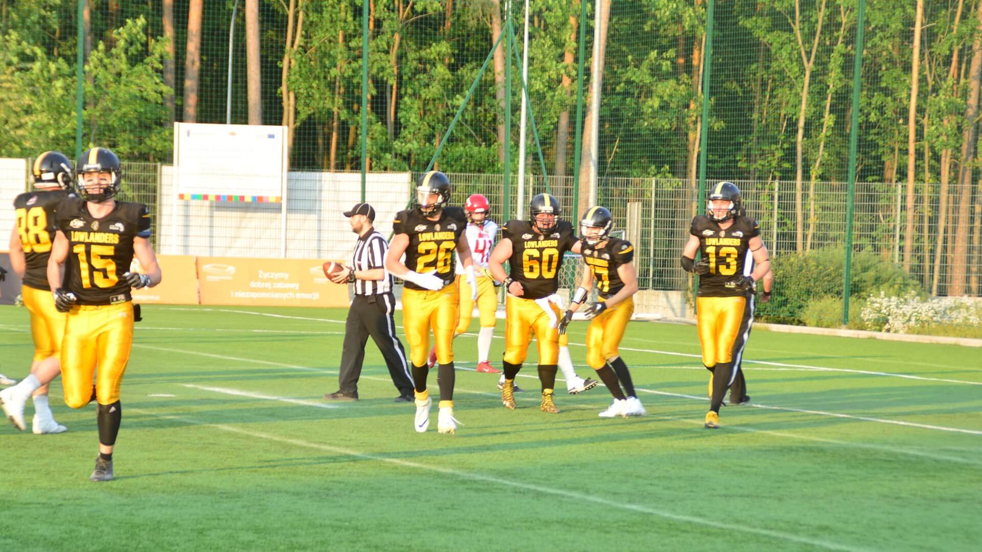 Kolejne dobrze rozgrywane ataki oraz bezbłędna gra w obronie Lowlandersów coraz bardziej gubiła Warsaw Mets. Do przerwy Żółto-Czarni prowadzili 28:6.