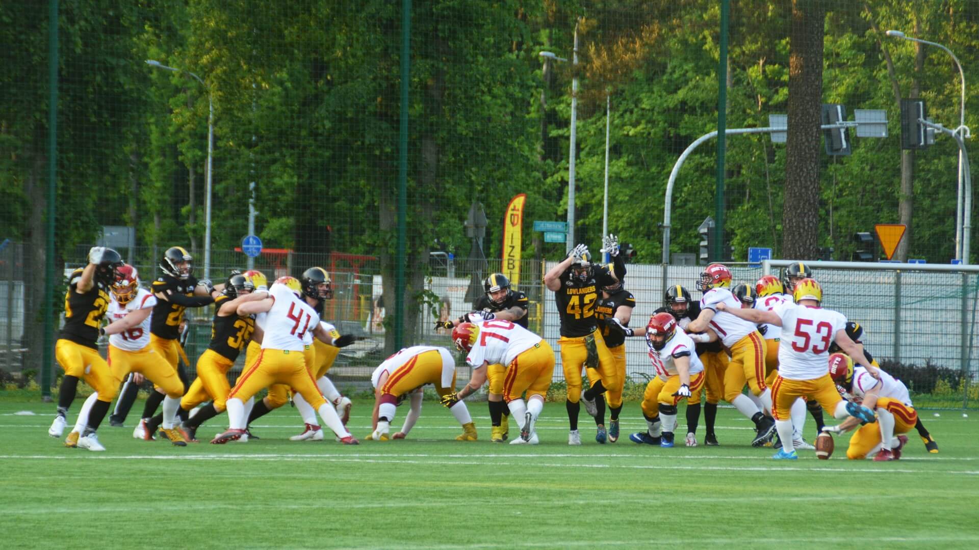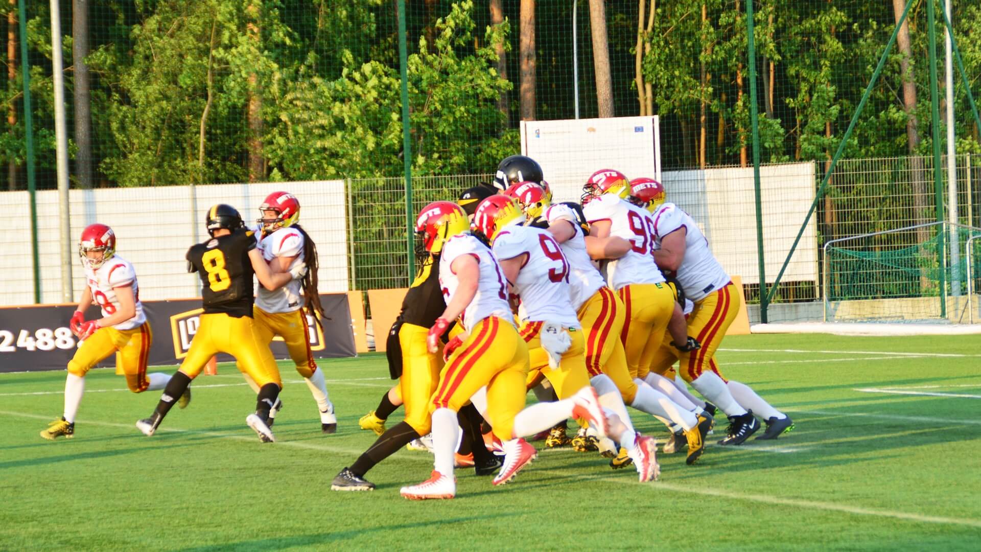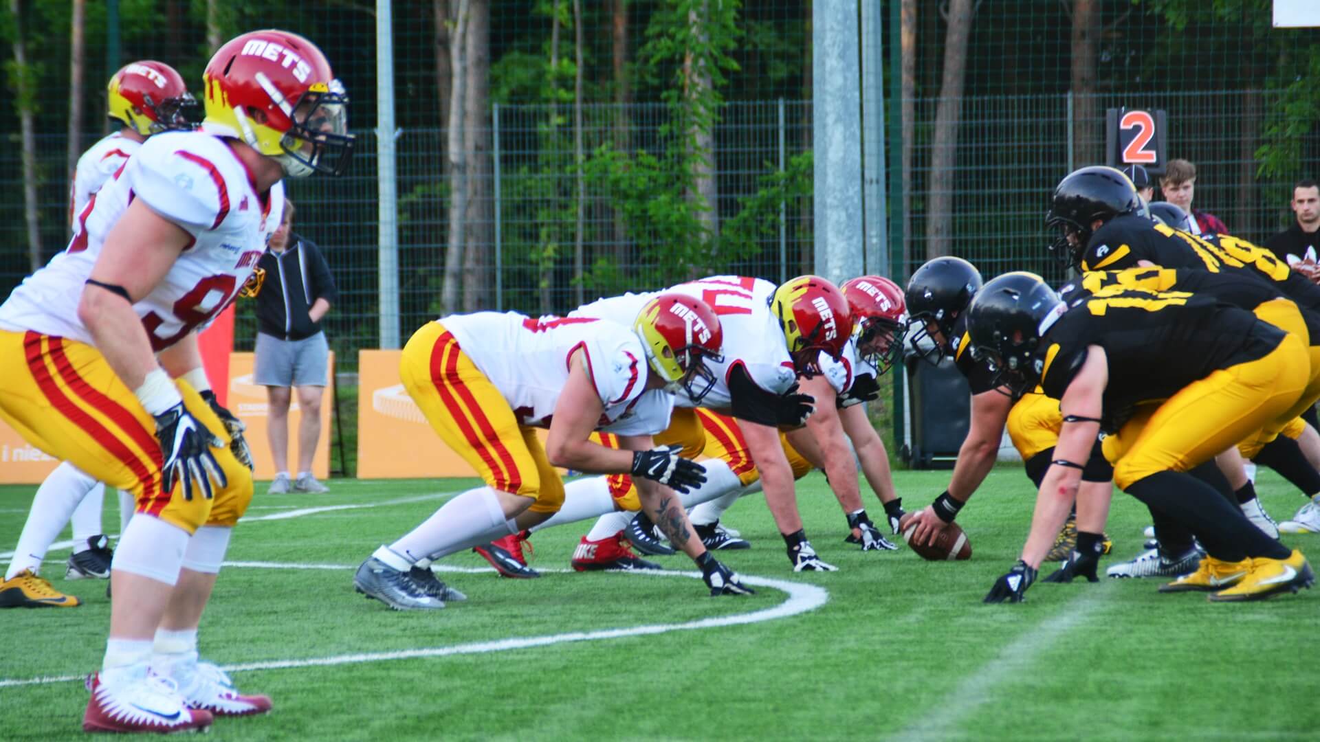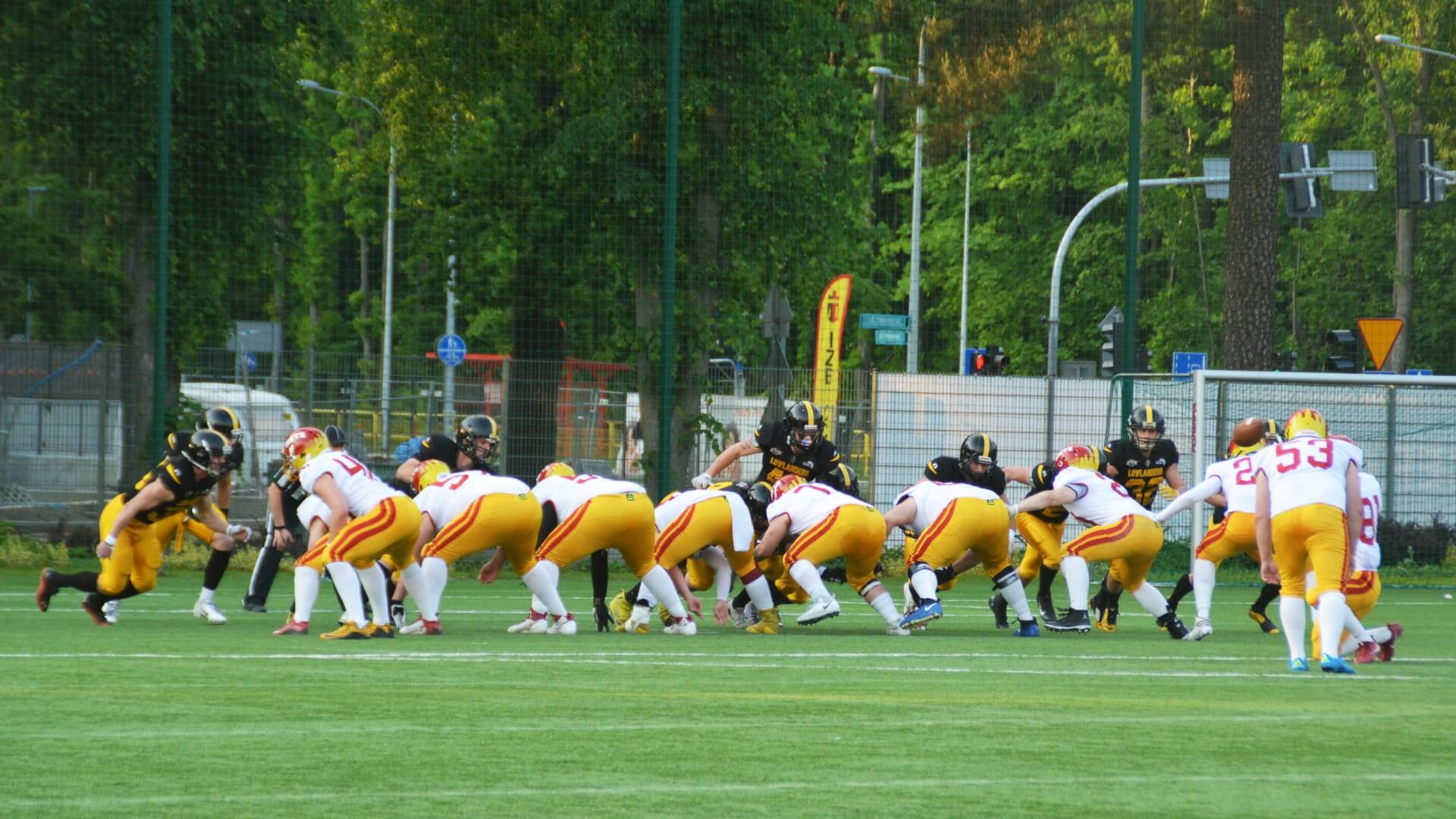 Kolejne dobrze rozgrywane ataki oraz bezbłędna gra w obronie Lowlandersów coraz bardziej gubiła Warsaw Mets. Do przerwy Żółto-Czarni prowadzili 28:6.