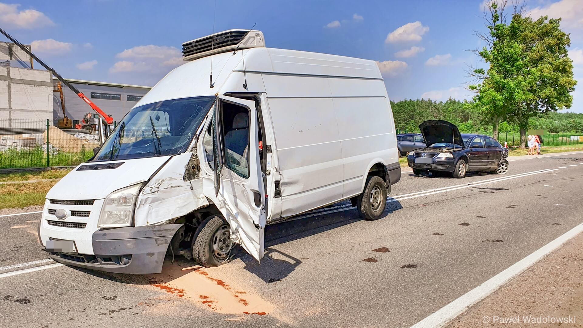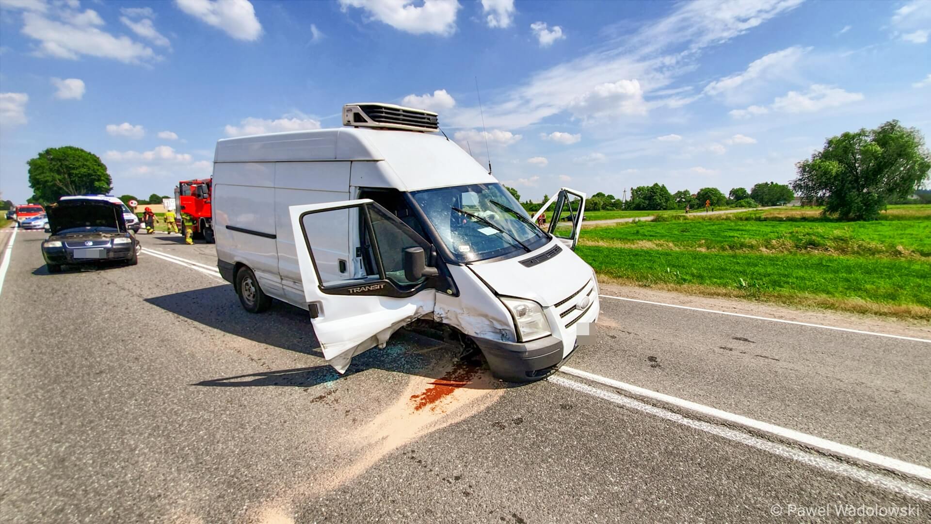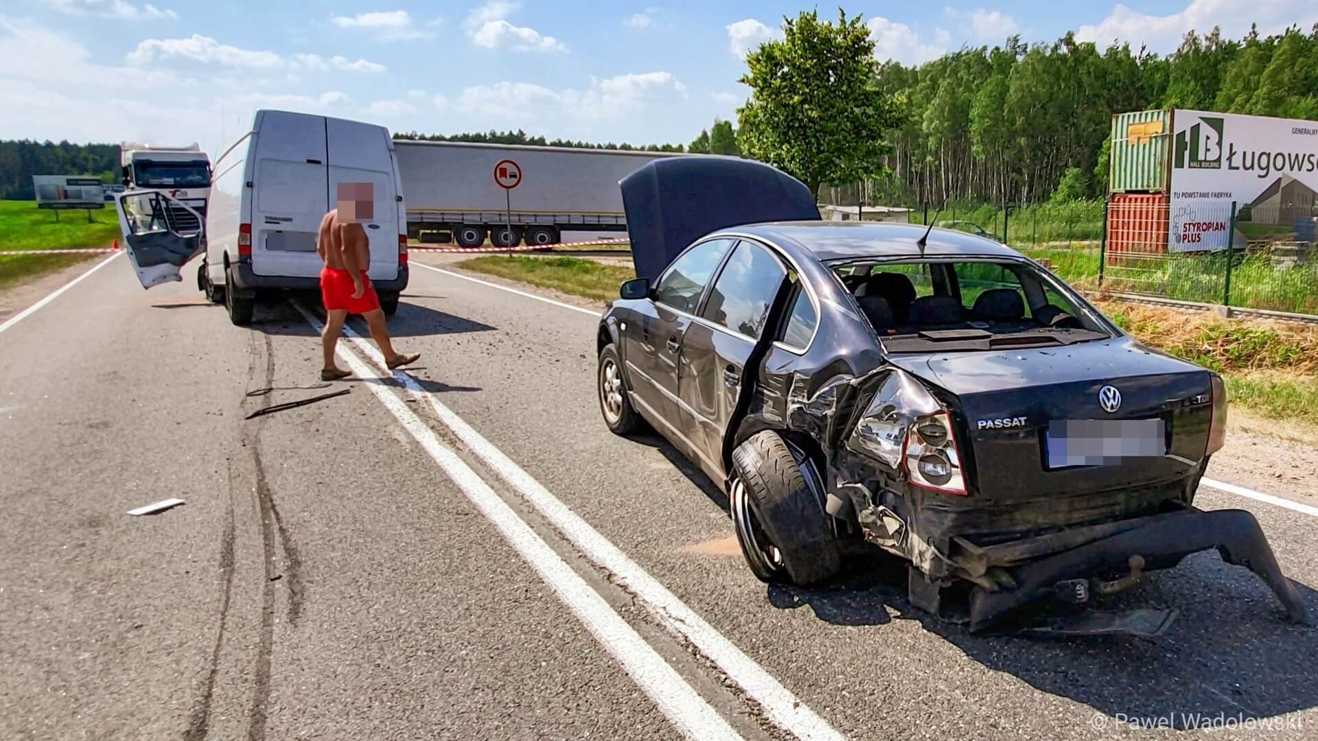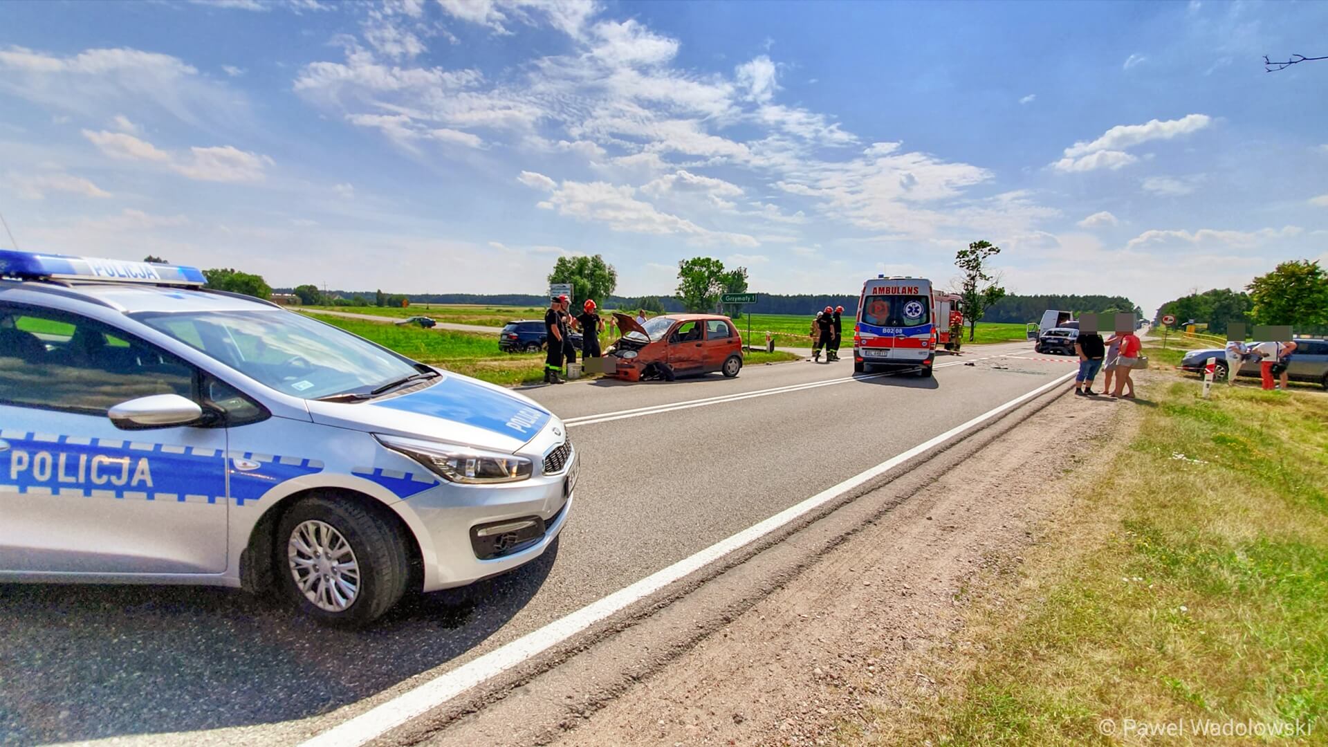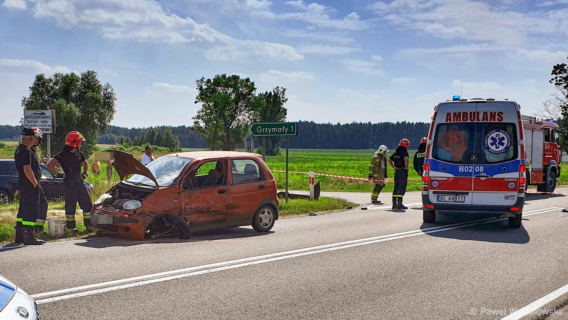 Wypadek na trasie Łomża - Ostrołęka - zderzyły się dwa auta i bus, fot. Paweł Wądołowski