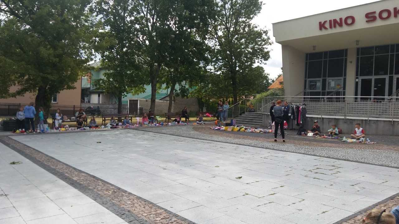 Dzieci z Sokółki wyprzedają swoje stare, nieużywane zabawki przed kinem "Sokół". Na kilkunastu stoiskach są m.in. pluszaki czy lalki barbie. Te młodsze i te nieco starsze dzieci znajdą tam coś dla siebie.