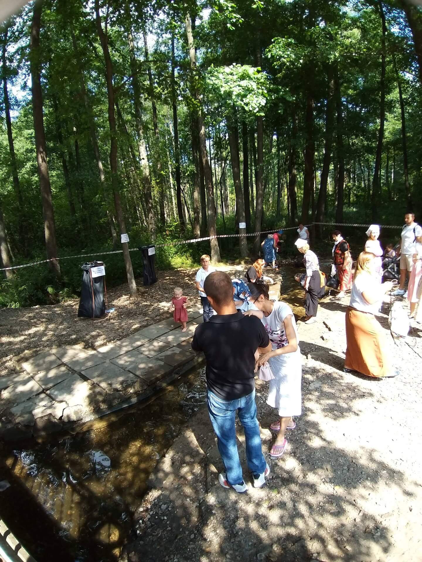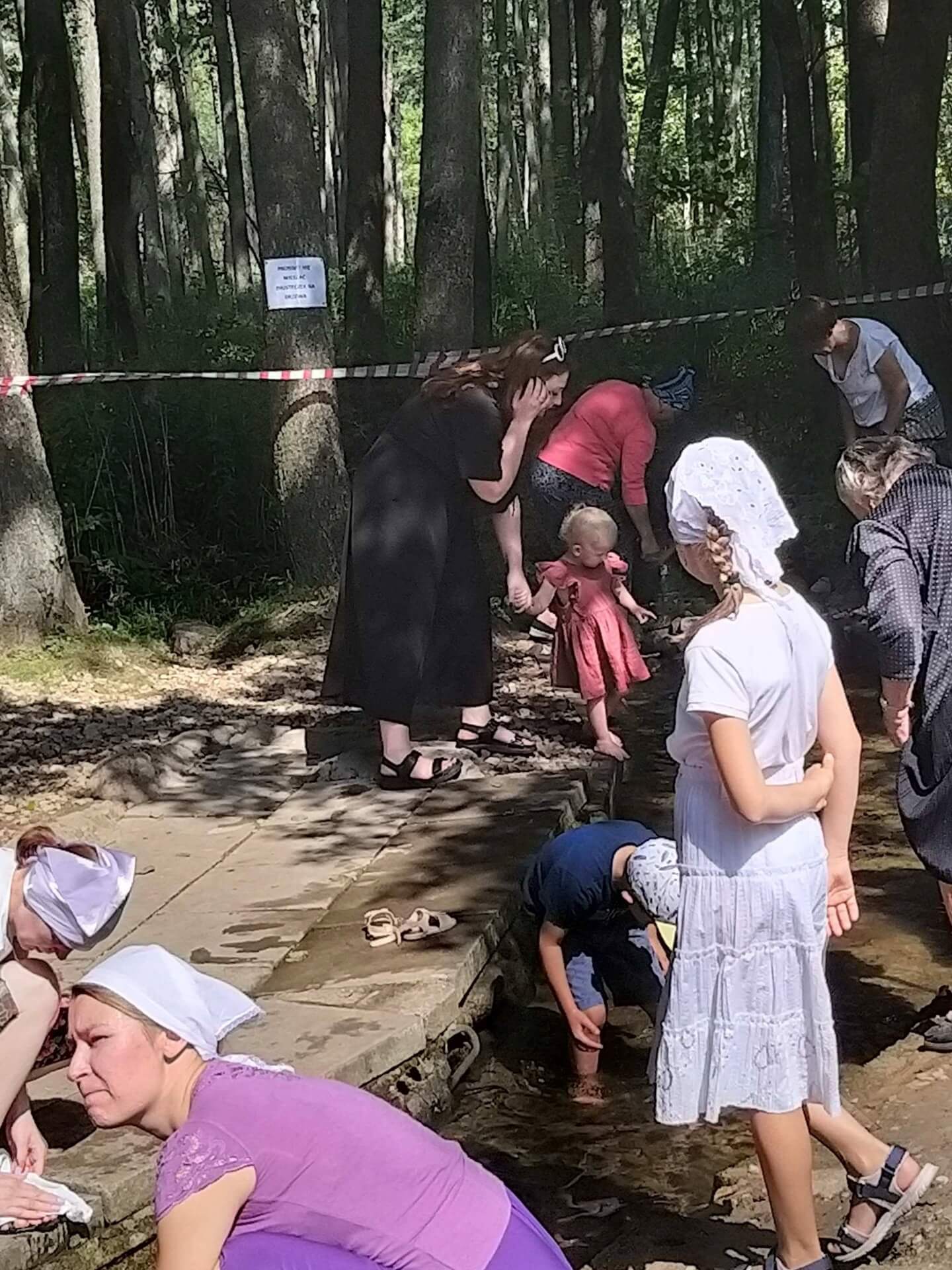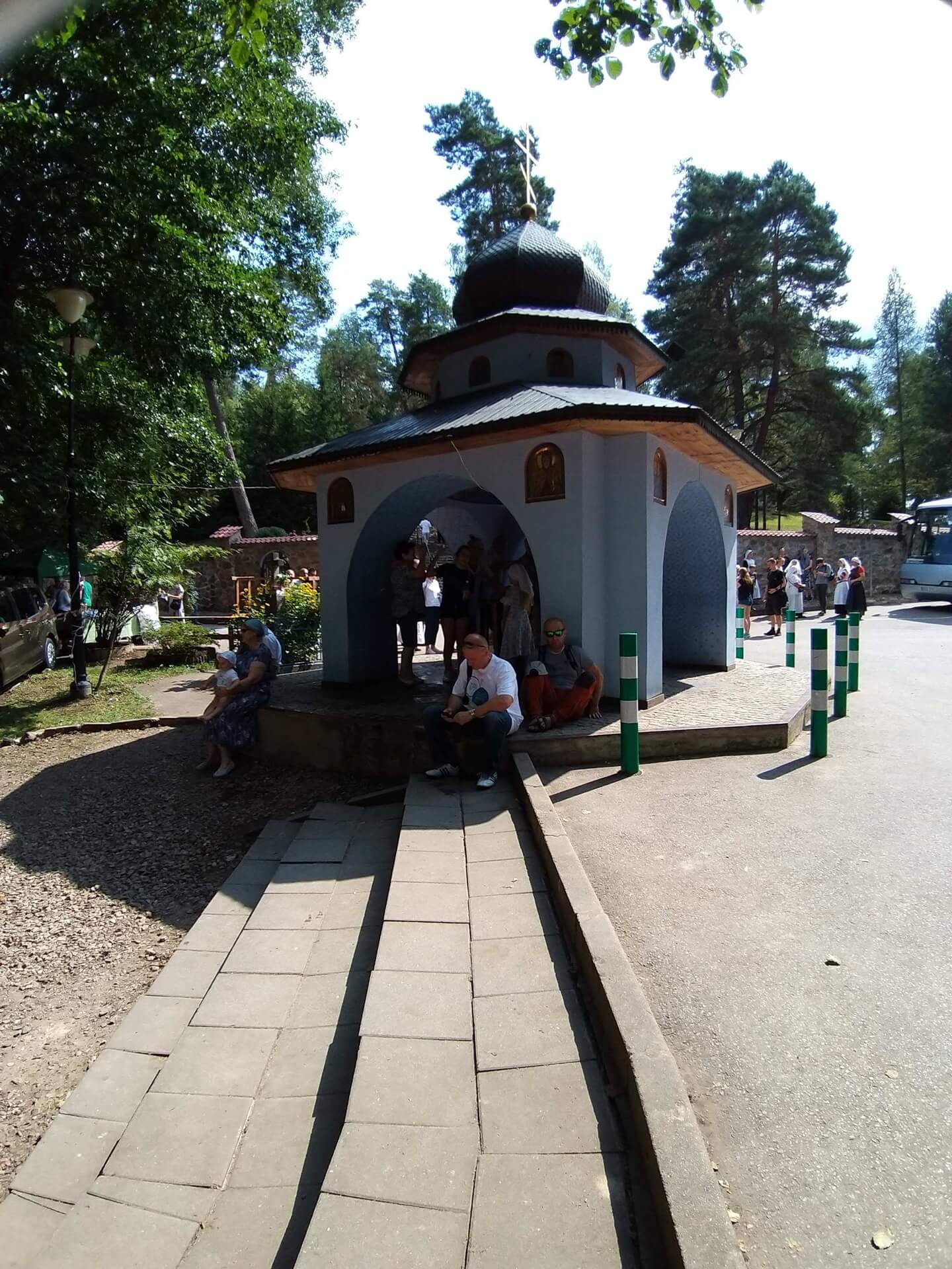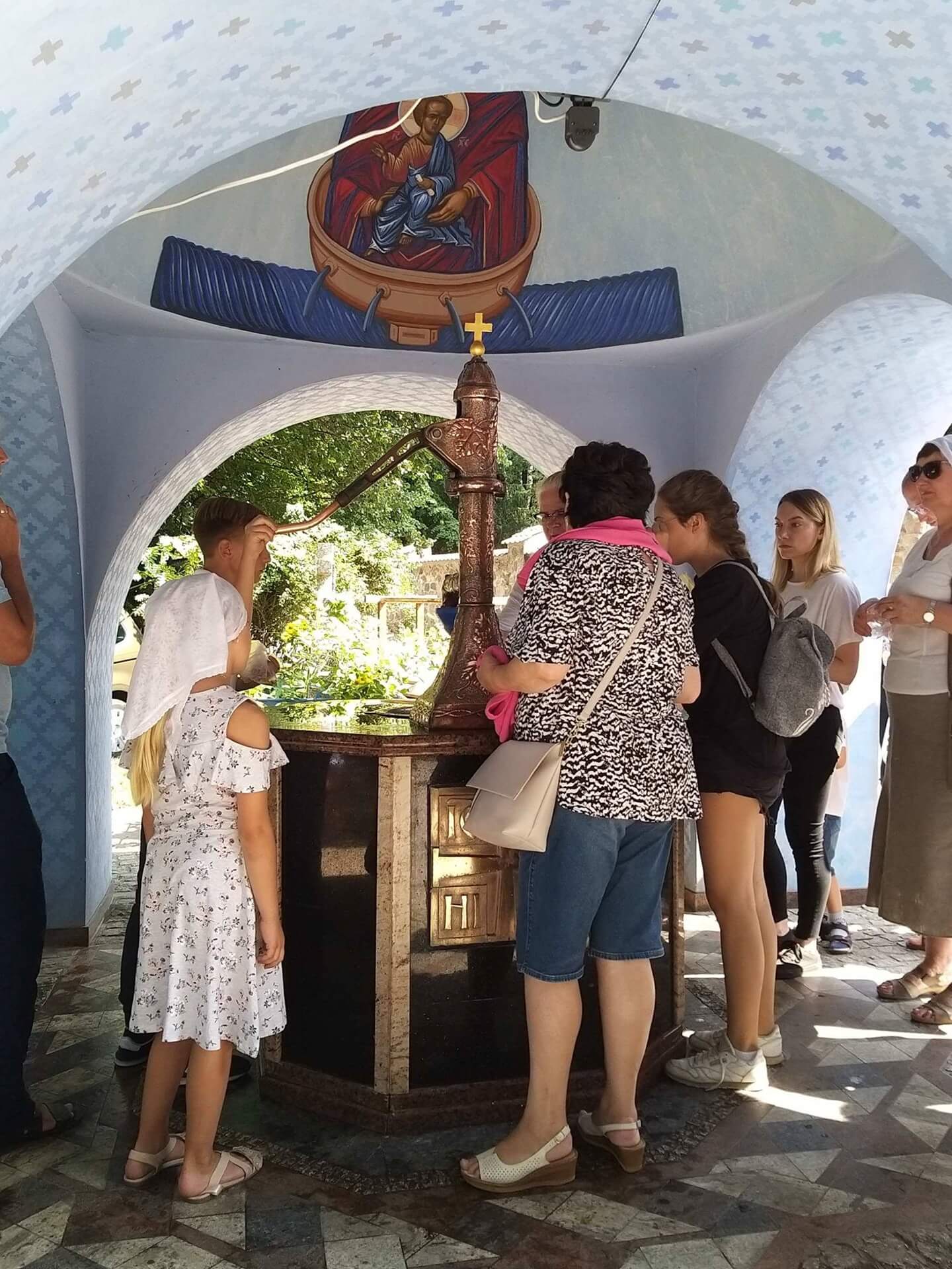 Po dojściu do monasteru tradycyjnie wiele osób gromadzi się przy kapliczce z cudownym źródłem u podnóża Świętej Góry. Wierzą, że tamtejsza woda ma moc uzdrawiania. Przemywają twarze i chore, bolące miejsca, a mokre chusteczki zostawiają przy kapliczce z przekonaniem, że zostawiają tam też swoje choroby. Wodę zabierają również do domów. "Woda z Grabarki w domu zawsze musi być" - mówią wierni.